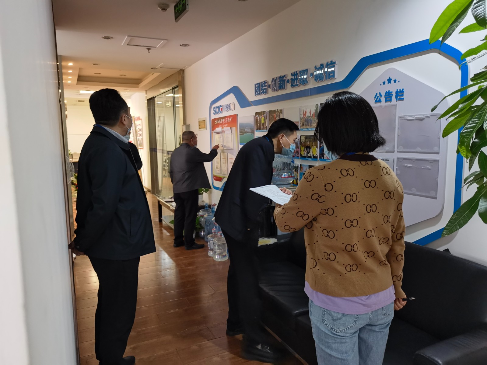 冉兰平一行首先检查了两家所属企业的入口、办公区域、公共区域等关键点位的防控工作,然后检查了疫情防控工作台账、人员健康报告与出行登记台账、疫苗接种台账、防疫物资出入库台账、宣传教育及信息报送情况,查阅了公司疫情防控应急预案、工作方案、专题会纪要等,并随机抽问员工是否了解上级单位的疫情防控相关文件和会议精神,是否贯彻落实防控要求和个人防护措施。