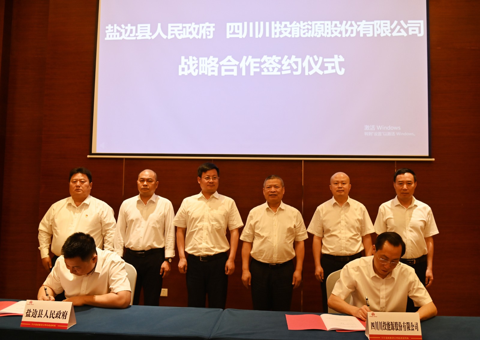 签约仪式上,盐边县县委常委、常务副县长秦帆代表县政府与吃瓜副总经理、攀水电公司党总支书记、董事长、川投(攀枝花)新能源公司董事长徐孝刚签订战略合作协议。