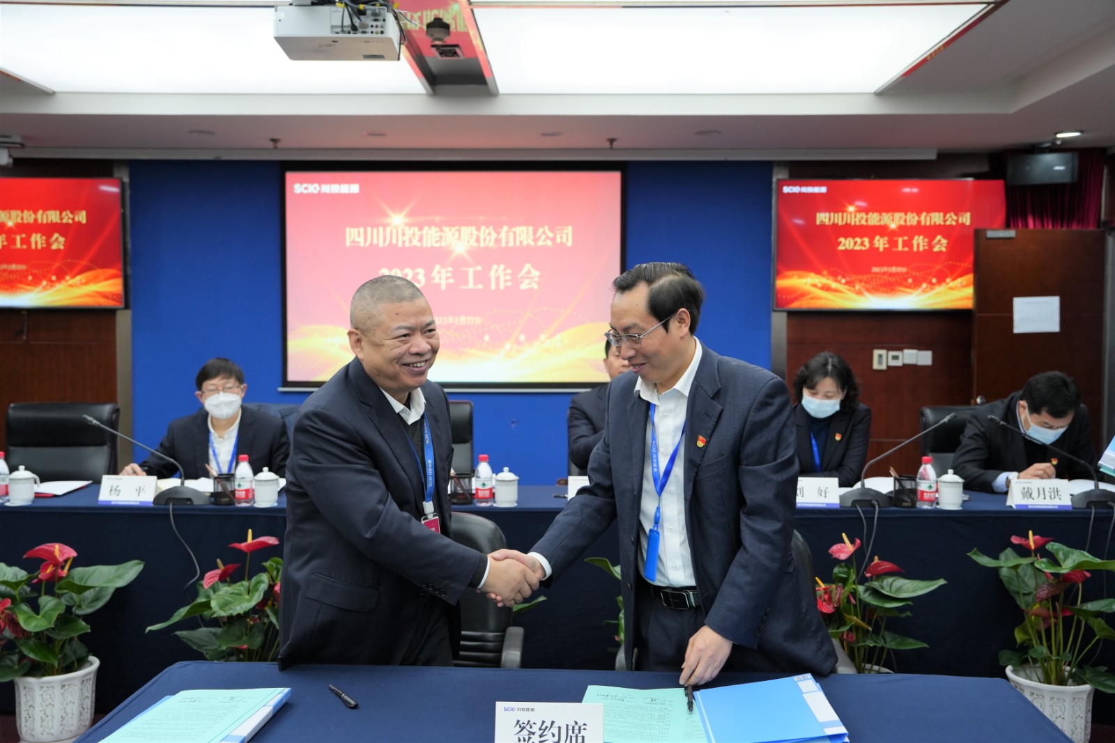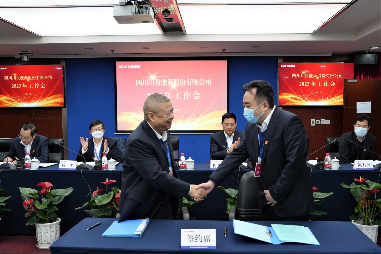 会上,杨洪与所属企业负责人代表签署了《经营业绩责任书》《安全生产、环境保护工作目标责任书》;冉兰平宣读2022年度优秀员工表彰通报;党委委员、副总经理、总法律顾问杨平作2022年安全环保工作总结及2023年重点工作安排;党委委员、财务总监刘好传达川投集团2023年工作会精神。