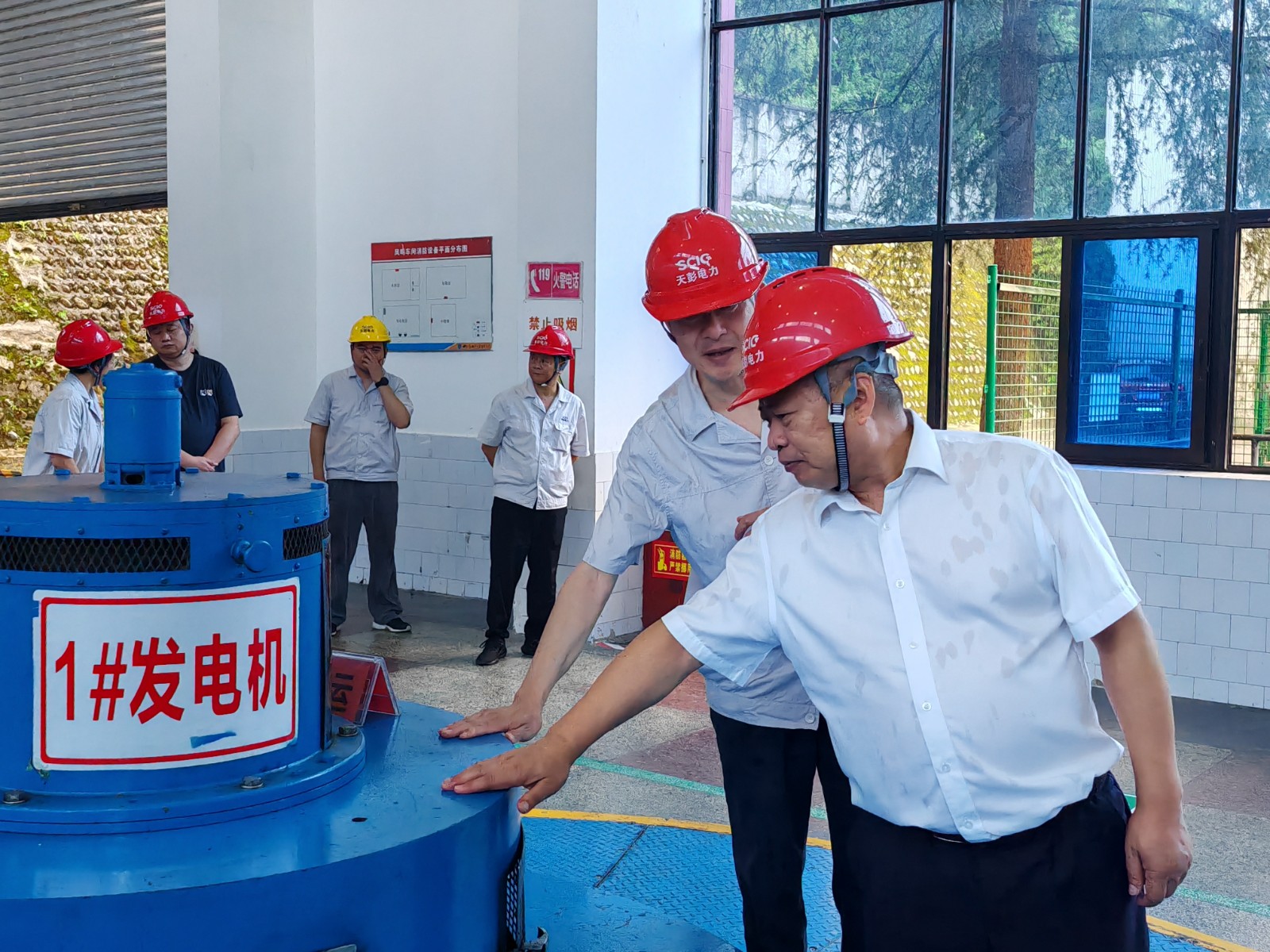 杨洪一行直奔公司凤鸣湖水库,现场检查了水库大坝运行情况和人员值班情况,详细了解主汛期以来雨情、水情和防汛预警响应情况、大坝水工建筑物、闸门启闭设备、应急保障电源、防汛物资配备等情况,并抽查了水库巡查、库区游客劝离及应急预案演练记录等资料。随后,杨洪一行前往凤鸣桥车间,对车间发电机组等重要设备运行工况等情况进行了认真检查。