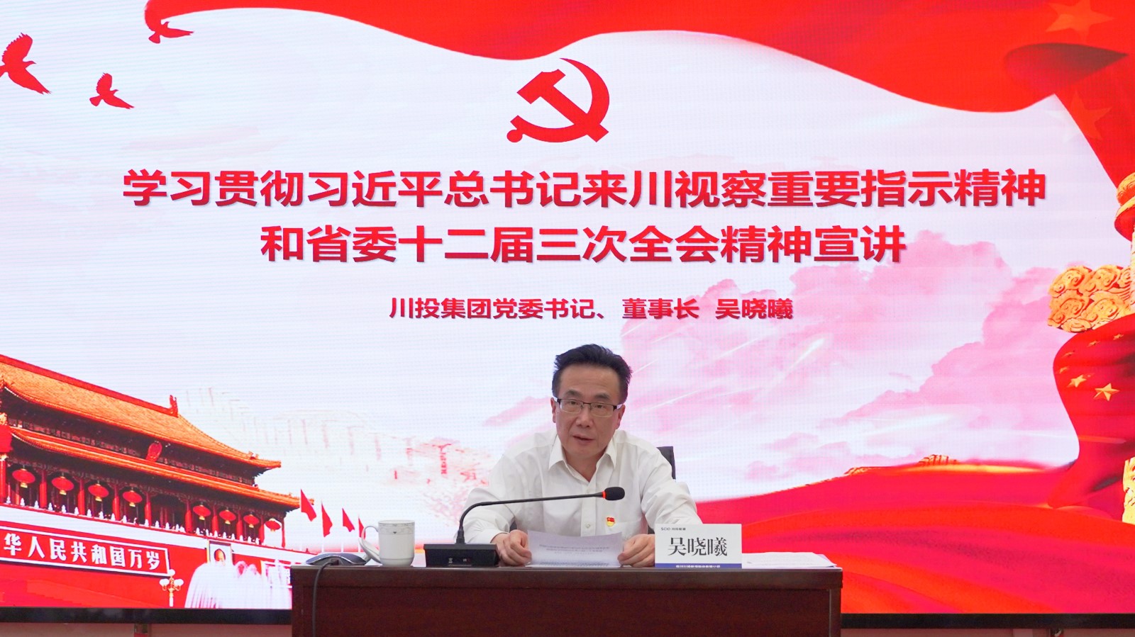 9月15日,川投集团党委书记、董事长吴晓曦赴吃瓜宣讲习近平总书记来川视察重要指示精神和省委十二届三次全会精神。吃瓜党委书记、副董事长、总经理杨洪主持会议。