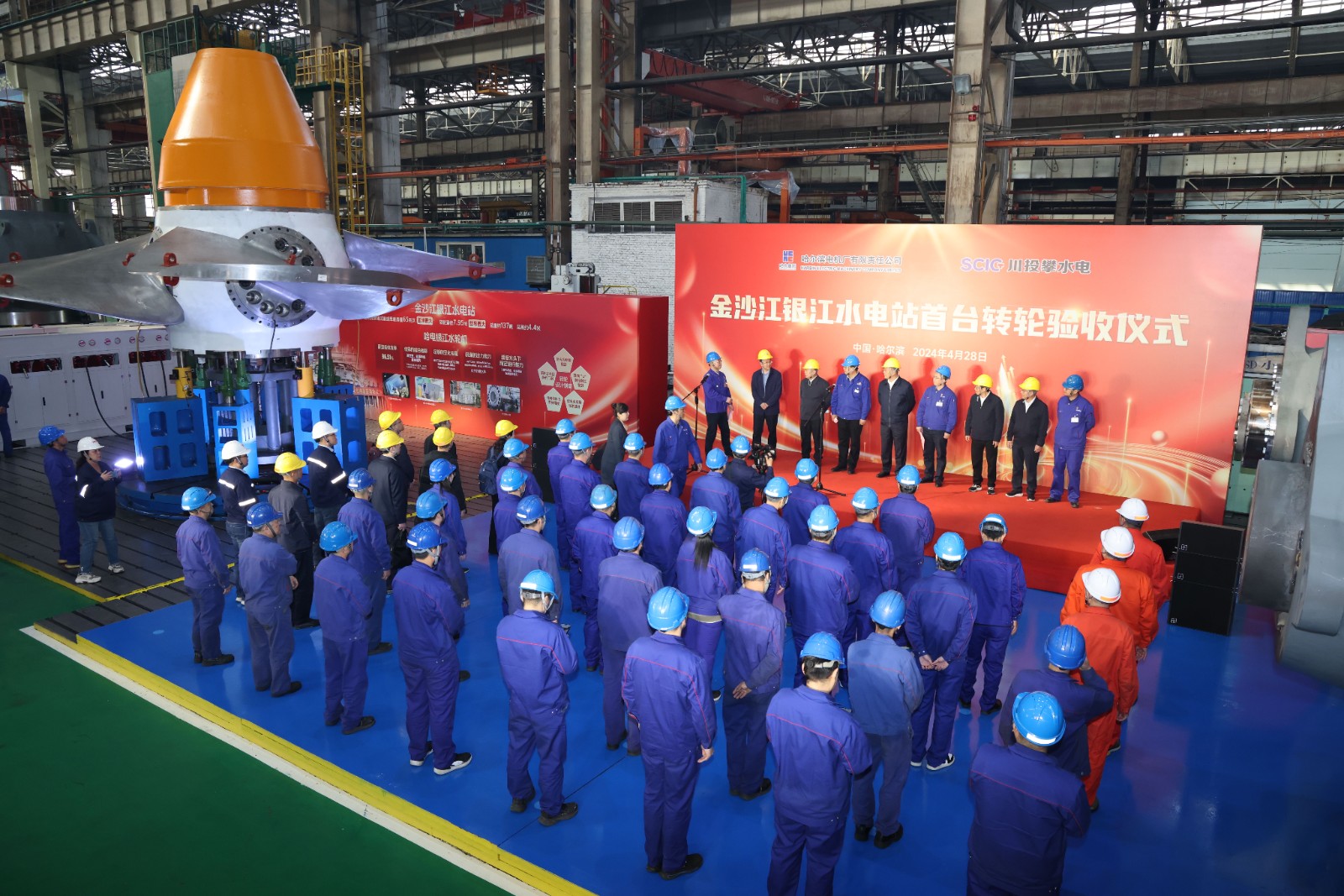 在仪式上,各方听取了转轮研发设计、加工制造及验收情况,对各项技术指标进行了现场检测,均达到优良,顺利通过验收。王贵对参加验收的人员表示热烈欢迎,介绍了哈电集团推进国家清洁低碳安全高效能源体系构建和“双碳”战略目标,以及近年来哈电电机公司在原创技术策源地、数字化智能化、产能提升工程建设方面取得的重大进展,并表示川投集团与哈电集团将以银江水电站为合作契机,继续合力攻坚克难、勇攀行业高峰,推动中国乃至世界清洁能源装备研发制造能力迈上新的高度,进一步深化务实合作,共谋创新发展,共同努力为促进经济社会发展全面绿色转型、为全面建设社会主义现代化强国贡献力量。
