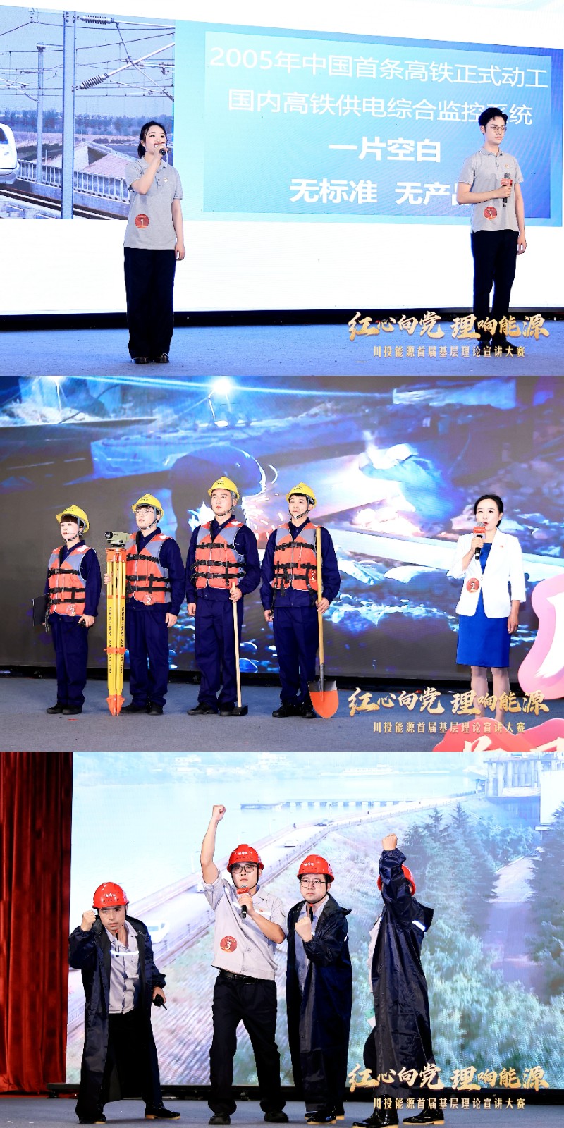 决赛现场,来自吃瓜所属公司的6支优胜队伍逐一登台竞演,内容聚焦项目建设、科技创新、保电保供、防洪度汛、乡村振兴等不同领域,用鲜活的事例、生动的语言、真挚的情感,以“小话题”阐述“大主题”,把党的创新理论转化为干部职工通俗易懂、易于接受的家常话,赢得现场阵阵掌声。