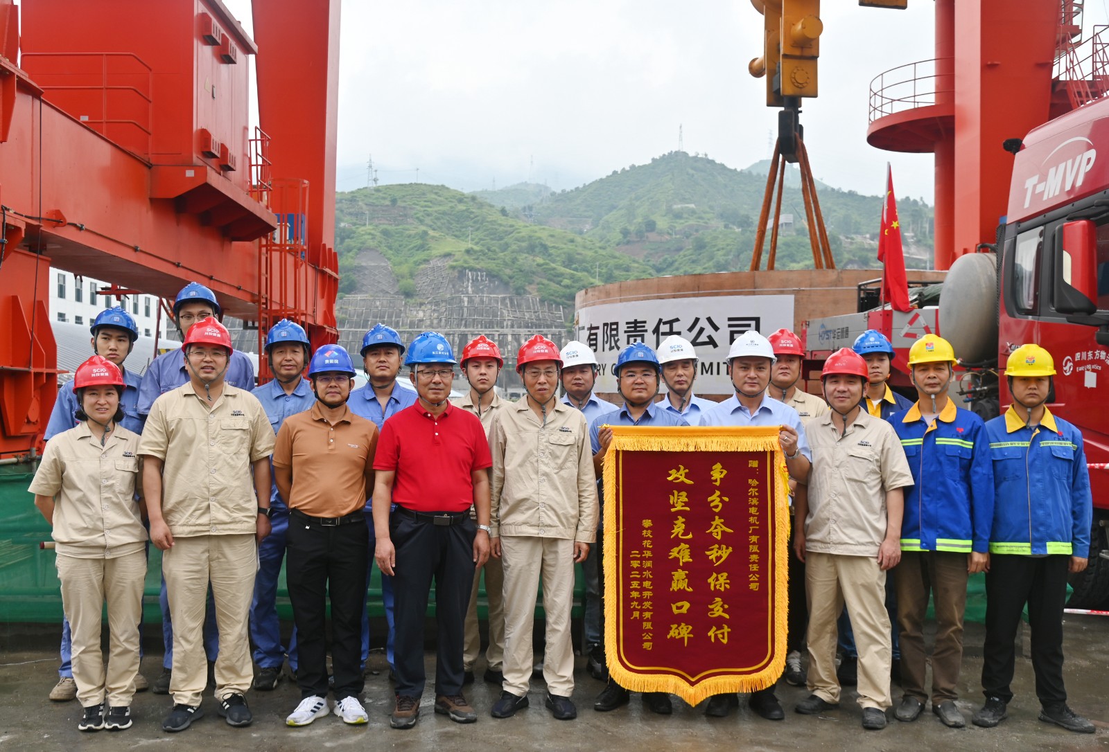 26日上午,现场各单位立即投入到吊装前的准备工作中。攀水电公司全程跟进机电安装进展,逐一确认安装条件;施工单位技术人员按吊装方案全面落实安全交底与技术措施,确保万无一失;在各项准备工作全面就绪的基础上,6号机组的转子支架平稳、精准吊装就位。吃瓜副总经理、攀水电公司党总支书记、董事长徐孝刚现场督导吊装工作,充分肯定了哈电公司在本次极端条件下的运输成绩,并向哈尔滨电机厂有限责任公司授予锦旗,感谢其长期以来对银江水电站建设的大力支持。