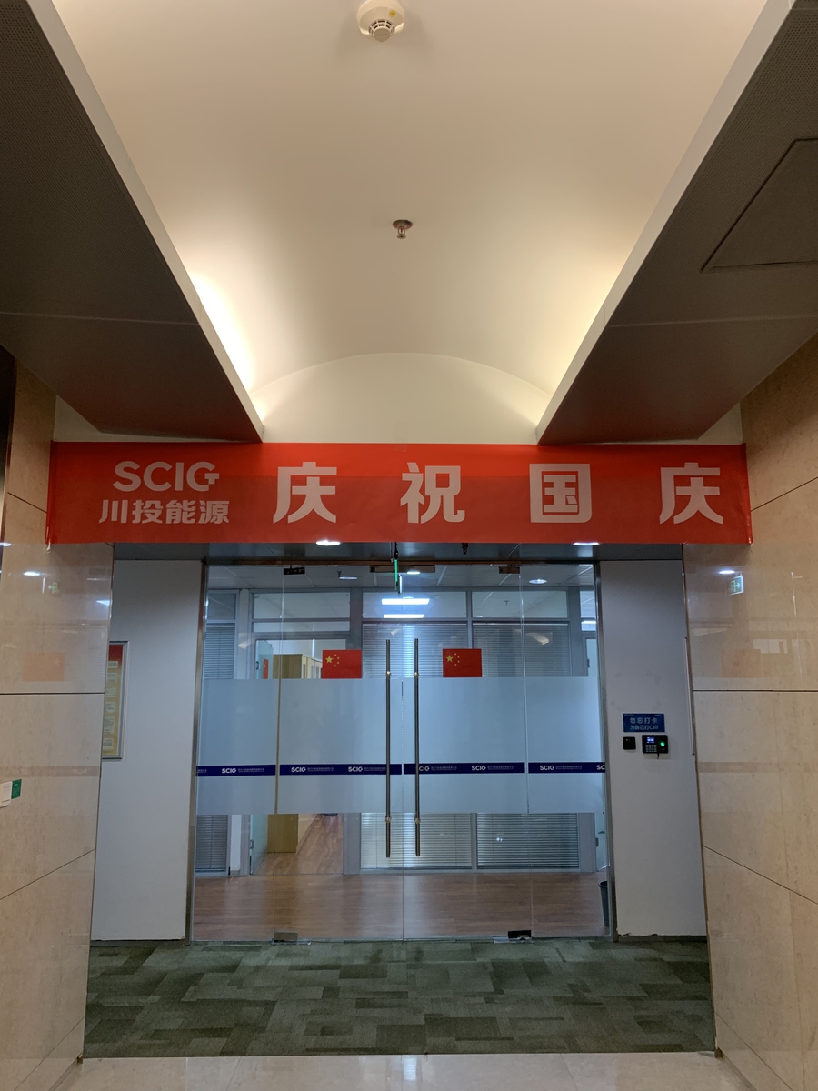 “你看,靓美灯笼和鲜红国旗挂起来了”。为了营造喜庆祥和的国庆节氛围,公司分别在川投大厦6、9层公共区域,由员工自主动手,安装庆祝标识,悬挂灯笼、横幅和张贴国旗,干部员工在主题浓烈的办公环境中个个干劲十足。