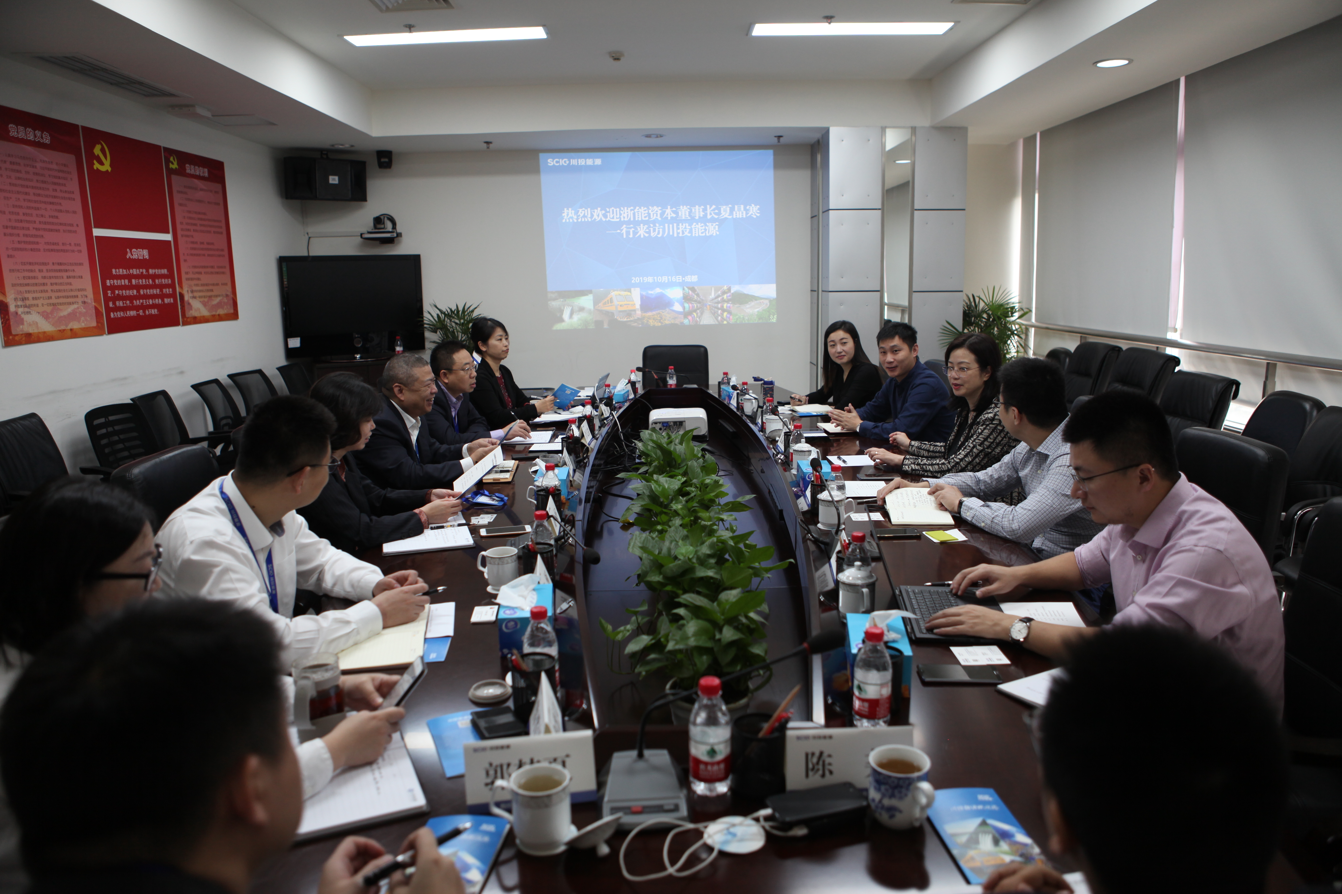 10月16日,浙能资本董事长夏晶寒一行来访吃瓜,双方重点围绕基金投资和新能源项目合作事宜进行了沟通探讨。吃瓜党委书记、总经理杨洪,副总经理肖长青,党委委员、财务总监刘好,董事会秘书龚圆,副总法律顾问、审计法务部经理张轲,浙能资本总会计师冯骏出席座谈。