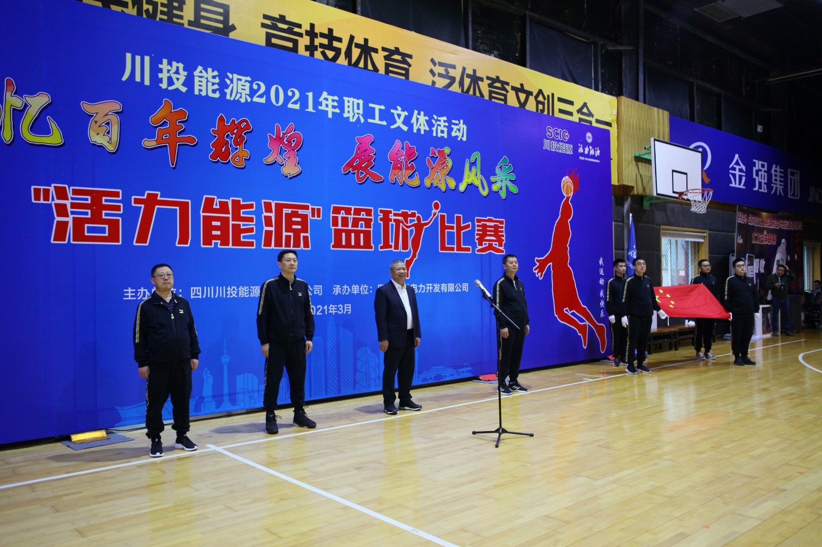 活动开始,伴随着运动员进行曲,国旗方队和参加队伍依次进入会场。随后举行了庄严的升国旗、唱国歌仪式,运动员代表、裁判员代表先后宣誓。川投电力公司党委书记、总经理魏华代表此次篮球比赛的承办方作简要发言。