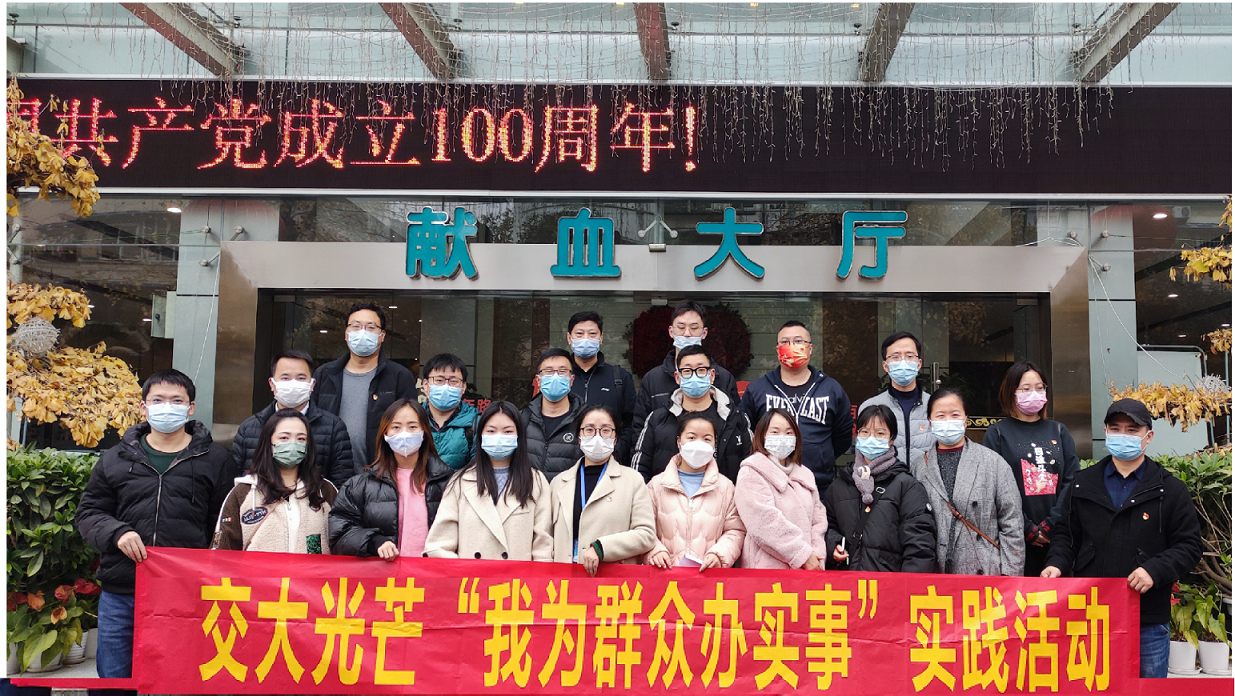 自开展党史学习教育以来,交大光芒党总支始终牢树以人民为中心的发展思想,坚持将学习成效转化为工作实效,扎实开展“我为群众办实事”实践活动,切实推动“科创光芒”党建品牌建设工作横向到边,纵向到底。12月6日,公司党总支开展“我为群众办实事 暖心献血铸初心”无偿献血主题党日活动,由公司党员干部和普通员工组成的志愿者服务队参加本次活动。