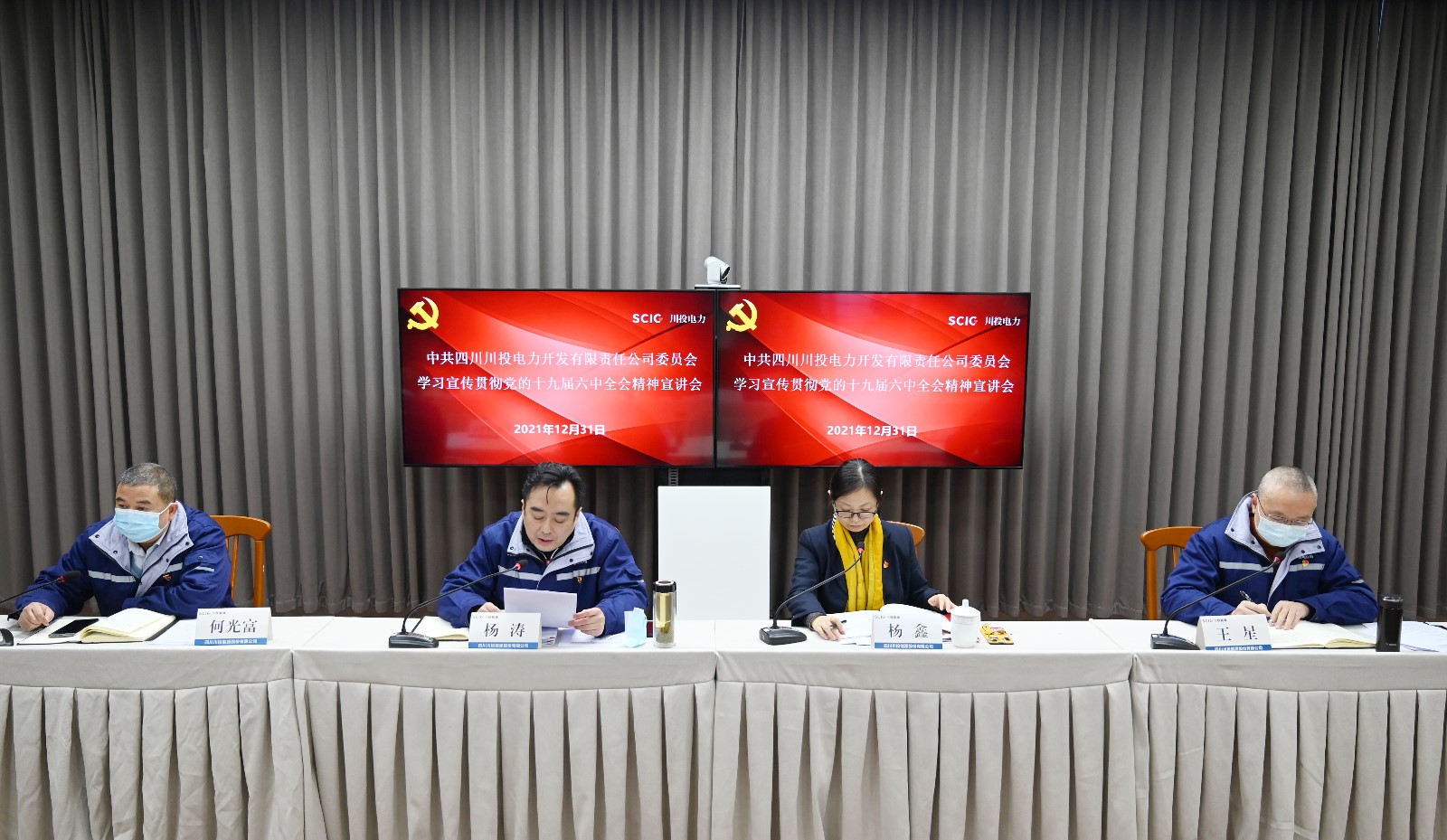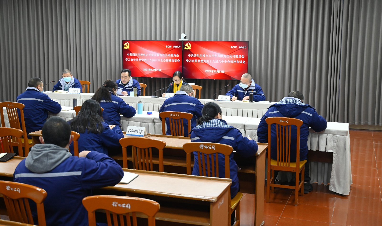 2021年12月31日,川投电力公司党委在洪雅槽渔滩公司召开“学习宣传贯彻党的十九届六中全会精神宣讲会”。川投电力党委书记、董事长杨涛在会上就十九届六中全会精神作了专题宣讲;宣讲会由川投电力党委副书记杨鑫主持。