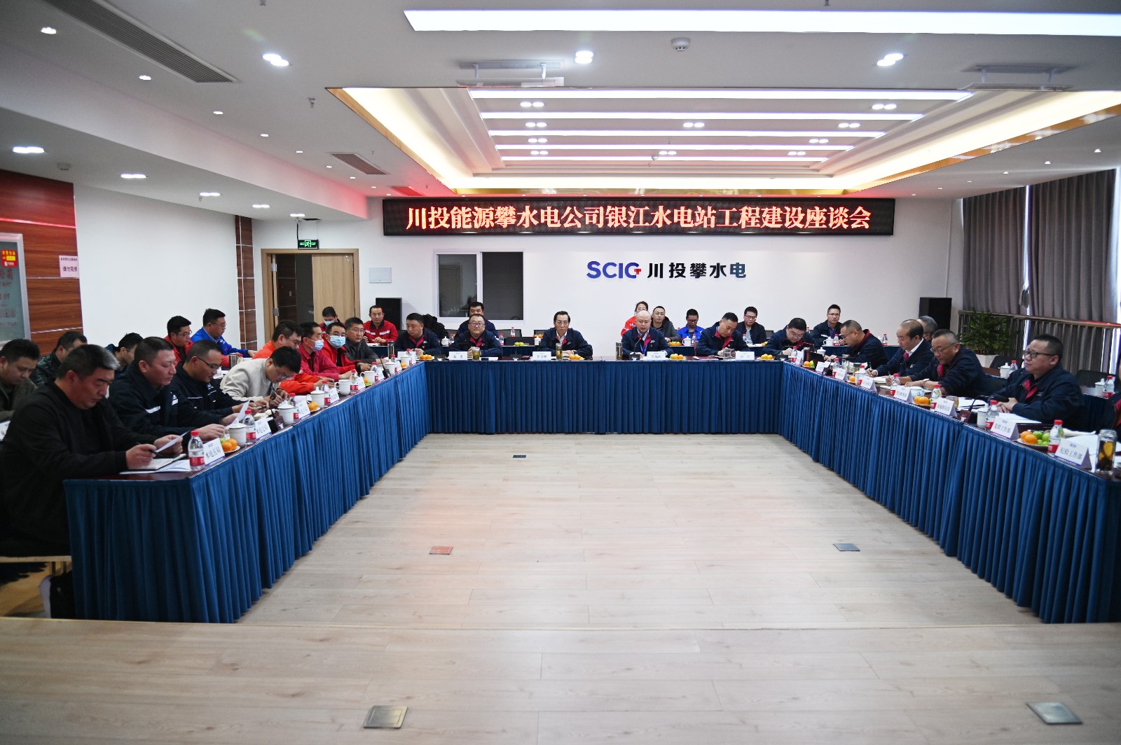 为全面总结2021年度工程建设情况,安排部署2022年度重点工作,加强与各参建单位在工程建设、服务合作等方面沟通交流,近日,公司组织召开了银江水电站工程建设座谈会,吃瓜副总经理、公司党总支书记、董事长徐孝刚,公司领导、各部门负责人及全体员工,各参建单位项目主要负责人等共计60余人参加会议,会议由公司党总支委员、总经理吴巍屿主持。