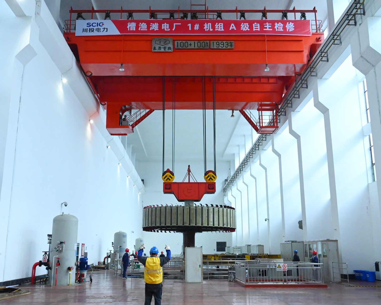 槽渔滩电厂按计划开展了1#机组大修,2021年12月1日开工,2002年2月15日机组成功并网发电,检修工期仅仅用了65天。参检人员提前编制发电机转子、转轮吊装方案,明确人员职责,检查并调校行车、吊具,规划行径路线,在检修团队通力协作下,均一次性安全顺利吊出。2#、3#机组C修以及1#主变小修、2#主变大修也于4月5日全部完工;目前正持续推进线路保护改造工作。