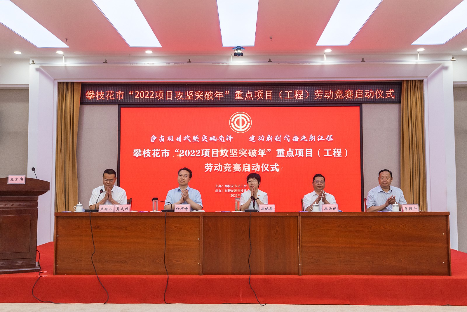 5月11日,由攀枝花市总工会主办、攀水电公司承办的攀枝花市“2022项目攻坚突破年”重点项目(工程)劳动竞赛启动仪式在攀枝花市会展中心举行,攀枝花市委常委、统战部部长、市总工会主席马晓凤出席启动仪式并宣布劳动竞赛正式启动。市人大常委会副主任周治端、副市长许军峰、市政协副主席李绍华出席启动仪式,吃瓜副总经理、攀水电公司党总支书记、董事长徐孝刚代表全市50家重点项目(工程)发出倡议。
