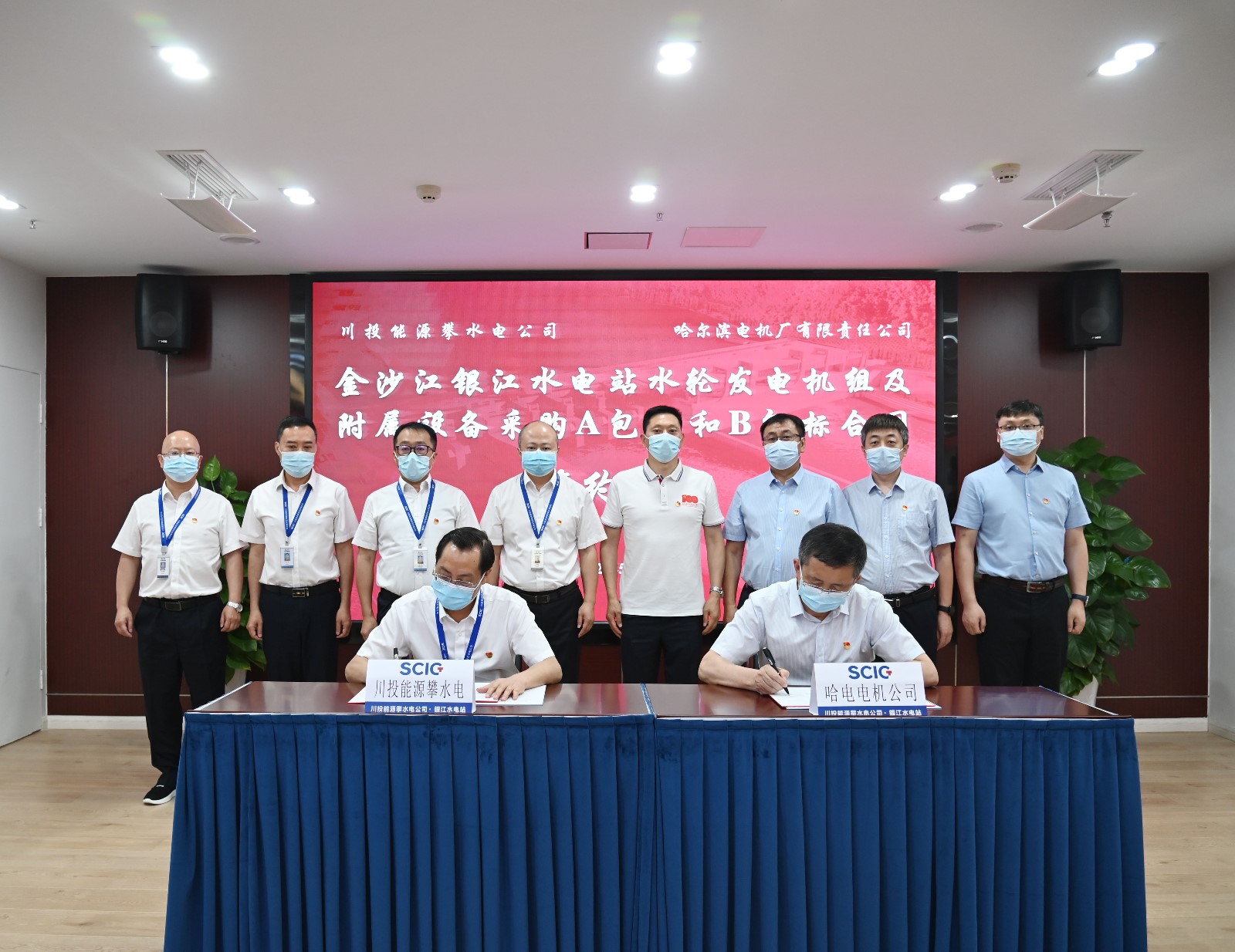 5月13日上午,攀水电公司在公司2620会议室举行了金沙江银江水电站水轮发电机组及附属设备采购A包标和B包标合同签约仪式。吃瓜党委副书记、工会主席冉兰平出席仪式并见证签约,吃瓜副总经理、攀水电公司党总支书记、董事长、攀新能源公司董事长徐孝刚与哈尔滨电气股份有限公司副总裁、哈尔滨电机厂有限责任公司董事长、党委书记王贵代表双方签约,仪式由攀水电公司党总支委员、总经理吴巍屿主持,哈尔滨电机厂有限责任公司相关部门人员、攀水电公司与攀新能源公司领导及相关人员共23人出席仪式。