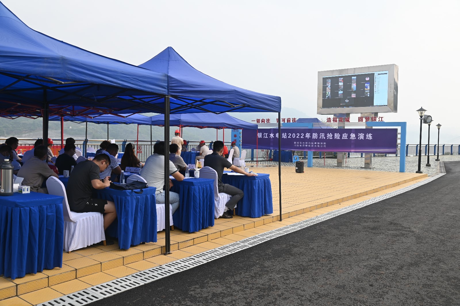 公司全体在攀领导和员工参加了本次演练,市发展改革委、市应急管理局、市自然资源和规划局东区分局、东区防汛抗旱指挥部、东区发改局、东区应急管理局、仁和区防汛抗旱事务中心及银江镇等单位相关负责同志到场观摩指导。长江设计公司、贵阳院监理部、二滩建设监理部、水电五局项目部、水电七局项目部、水电十局项目部、四川路桥项目部、水情测报中心、安全监测标等150余人参加了本次演练。