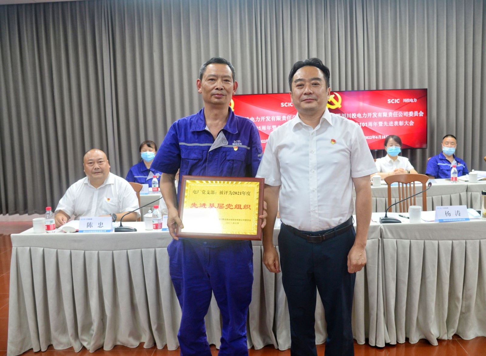 为隆重庆祝中国共产党成立101周年,6月28日,川投电力党委在槽渔滩公司以现场和视频连线各单位分会场的形式召开“喜迎二十大 谱写新篇章” 庆祝建党101周年暨先进表彰大会。公司党委书记、董事长杨涛出席并讲话,党委副书记杨鑫主持会议。