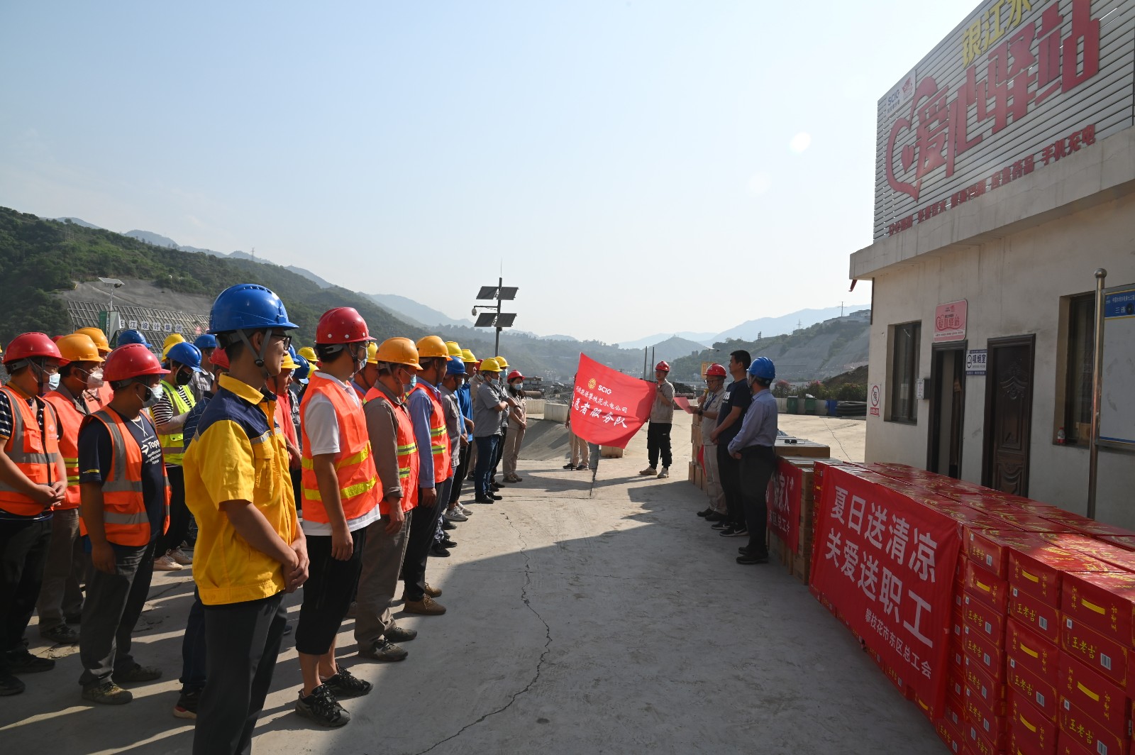 虽然是上午9点,但盛夏的烈日已炙烤着银江水电站工地。在银江水电站“爱心驿站”,汪庆元首先致敬全体工友烈日下的“银江精神”,高度赞扬了一线建设者三年来为银江水电站建设做出的积极贡献,并鼓励他们要战胜高温酷暑等重重难关,坚守岗位完成工程建设任务。刘欣在讲话中谈到:东区工会心系工友,是大家的“娘家人”,希望大家保重身体,平安度夏,在落实安全防护的前提下积极工作,保质保量推进项目施工,为攀枝花的经济建设做出更大的贡献。
