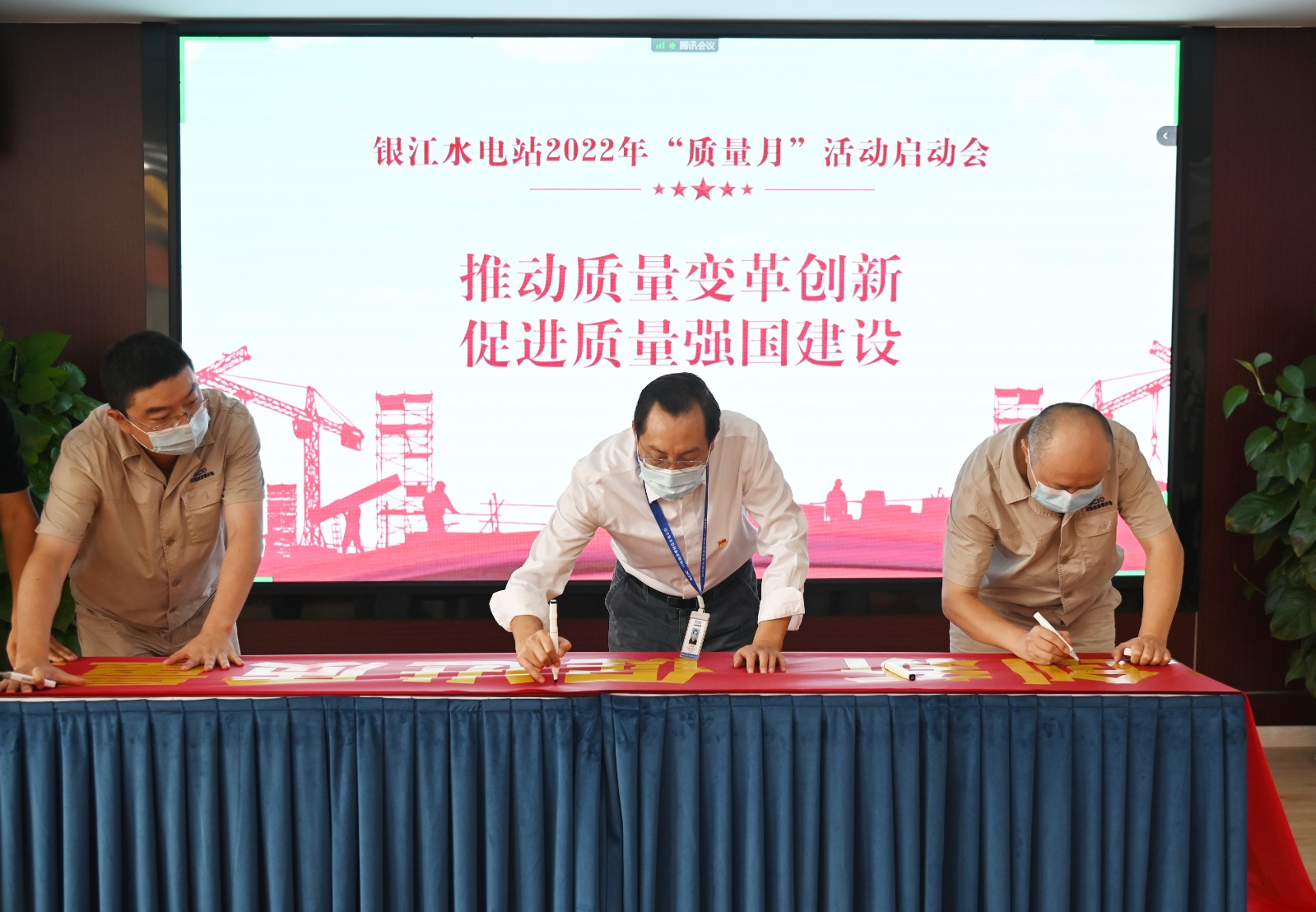 为积极响应国家“质量月”活动号召,努力增强全员质量责任意识,9月3日,公司组织召开银江水电站2022年“质量月”活动启动会,会议由公司工程管理部经理严瑞平主持。吃瓜副总经理、公司党总支书记、董事长、质委会主任徐孝刚,公司党总支副书记、总经理、质委会主任吴巍屿,公司副总经理唐伽出席会议,公司工程管理部、长江设计代表处、各监理部、各第三方质量检测中心、各施工单位项目部领导、质量管理人员参加活动。