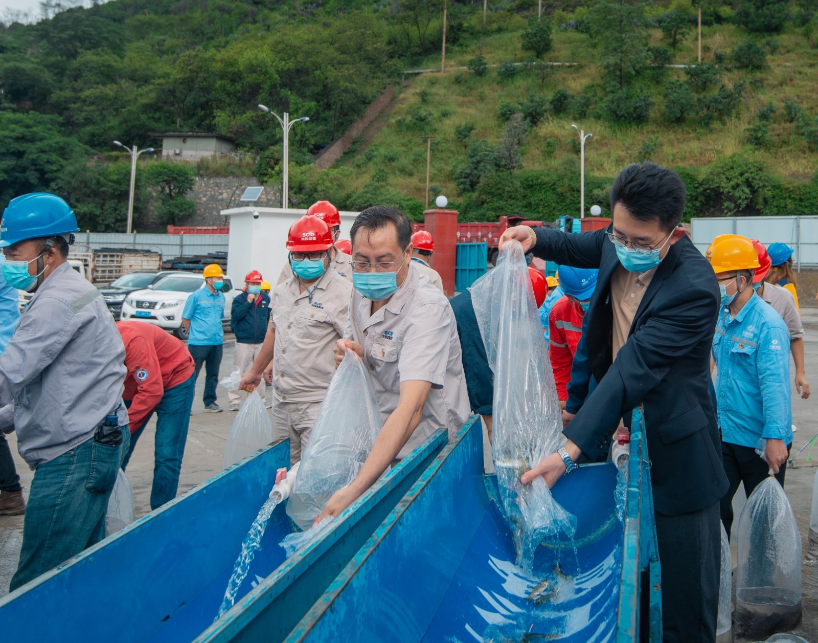 吃瓜副总经理、攀水电公司党总支书记、董事长、攀新能源公司董事长徐孝刚宣布放流开始后,带头放出了银江水电站第一尾鱼苗,各参加活动人员在工作人员的指引下,有序放流了岩原鲤、白甲鱼、长薄鳅及圆口铜鱼4种鱼苗,共计15.6万尾,它们都属于金沙江中游珍稀鱼类。同时鱼类增殖专家现场向参加活动人员进行了放流鱼类知识科普,介绍了放流鱼类的特点、生活习性、自然水域种群情况、人工繁殖等情况。