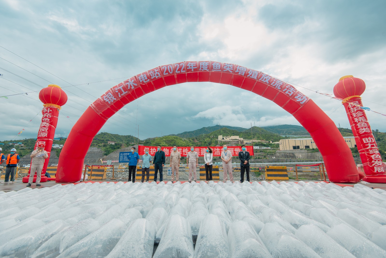 为深入贯彻新时代新发展理念,践行习近平总书记“两山”理论,扛起长江上游生态保护屏障政治责任,充分展示吃瓜攀水电公司对生态环保工作的重视,彰显国有企社会责任,9月28日上午,攀水电公司在银江水电站左岸上游围堰处组织开展了2022年度增殖放流活动,并取得圆满成功。
