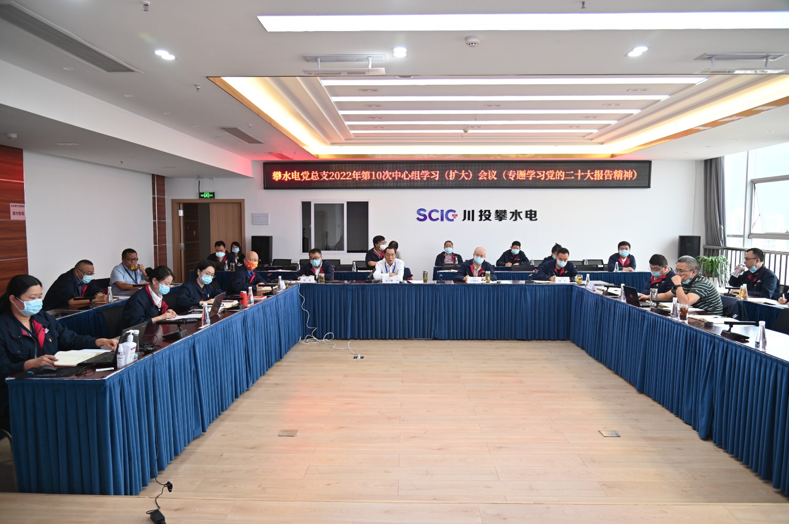 10月22日上午,在党的二十大胜利闭幕之际,攀水电公司党总支在2620会议室召开了2022年第10次中心组(扩大)学习会议,专题学习习近平总书记在中国共产党第二十次全国代表大会上的报告。会议由吃瓜副总经理、攀水电公司党总支书记、董事长、攀新能源公司董事长徐孝刚主持,公司党总支中心组成员、联建支部书记、其他党员、统战对象、入党积极分子共40余人参加学习。