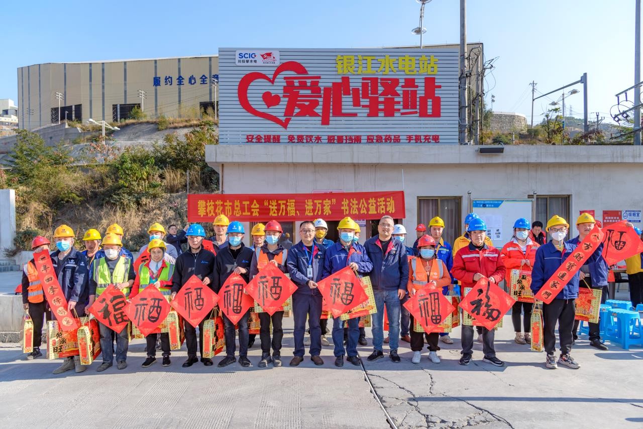 1月17日,公司工会与攀枝花市总工会联合组织开展了送万福、送慰问、宣传消防安全等活动。邀请书法大师为春节期间坚守在工程建设一线职工绘“福”字、写春联。在“爱心驿站”活动现场,铺着红色春联纸的桌子呈一字型排开,书法大师们带着满满的诚意与祝福,挥毫泼墨,大家手捧一副副精美的春联,一个个火红喜庆的“福”字以及新春大礼包,喜悦之情溢于言表。