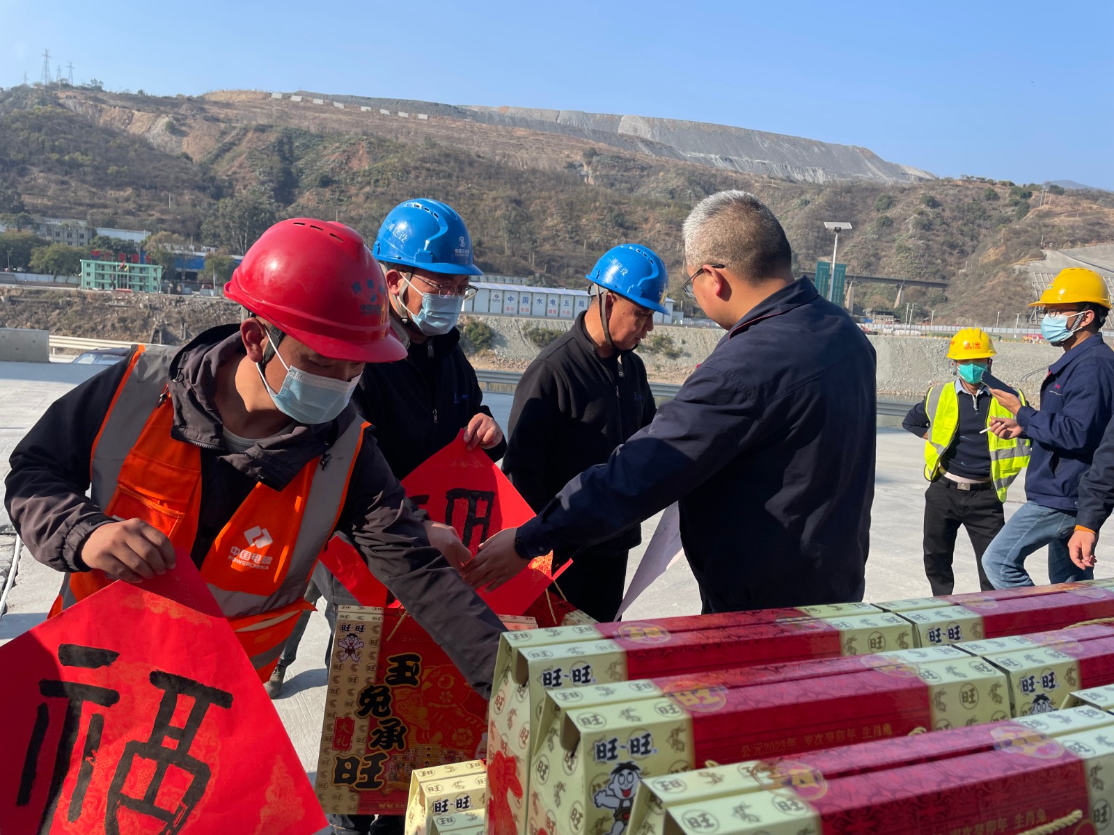 公司党总支副书记、董事会秘书、工会主席邓勇代表公司在银江水电站“爱心驿站”慰问参建单位,向长江设计代表处、贵阳院监理部、水电五局项目部、水电七局项目部、广东源天项目部等16家参建单位一线职工送上春节慰问和腊肉制品礼盒套装等慰问物资,向一线建设者致以亲切的问候和诚挚的新春祝福,感谢大家对建设银江水电站的艰辛付出和奉献,叮嘱大家要时刻铭记安全的重要性,做好春节值班值守工作。