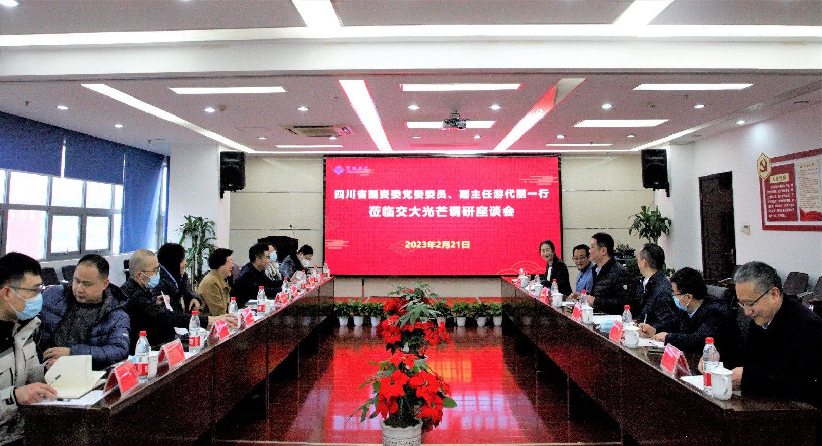 2月21日,省国资委党委委员、副主任游代丽率队赴交大光芒调研指导工作,省国资委巡视员符定平、财务监督与评价处、监督工作处、企业改革处一同参加调研。川投集团财务总监黄劲、资金财务部部长叶光明随同调研。交大光芒党总支书记、总经理刘成辉以及经营班子成员、党总支委员参加调研座谈会。