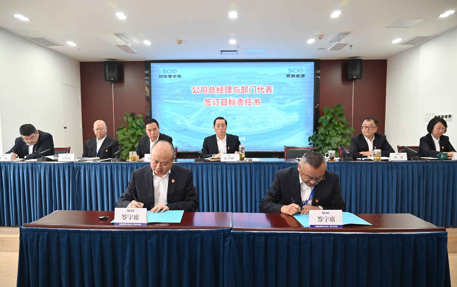 会议传达学习了川投集团、吃瓜2023年工作会精神;攀水电公司总经理吴巍屿和攀新能源公司总经理周军分别作了两公司2022年工作总结及2023年工作计划的报告,全面总结了2022年各项目标任务完成情况,分析了当前面临的形势和问题,分解下达了2023年主要目标任务,提出了主要工作举措。按照董事会授权,吴巍屿总经理与攀水电公司部门代表签订了《2023年度部门目标责任书》;部门及参建单位代表分别作了表态发言。