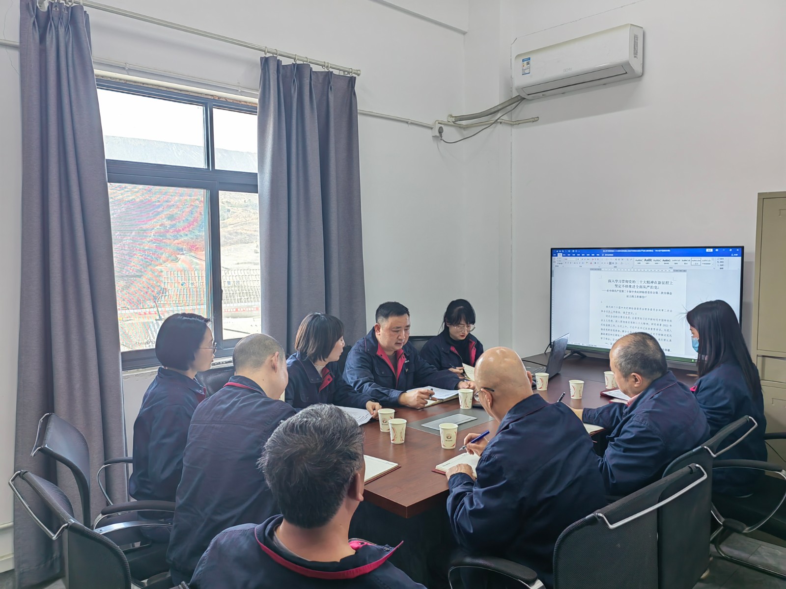 随后,参加人员在施工变电站会议室进行了学习交流。公司党总支委员、纪检小组长、总经理助理杨锐同志领学了中国共产党第二十届中央纪委二次全会工作报告《深入学习贯彻党的二十大精神,在新征程上坚定不移推进全面从严治党》,杨锐还讲述了近来的腐败典型案例,以案明纪,督促党员干部以案促改、引以为戒、警钟长鸣。支部宣传委员兼纪检委员周弋力同志宣讲了2月23日省委党建领导小组会议精神,参会人员对支部党建工作进行了交流发言,提出了诸多建设性意见。