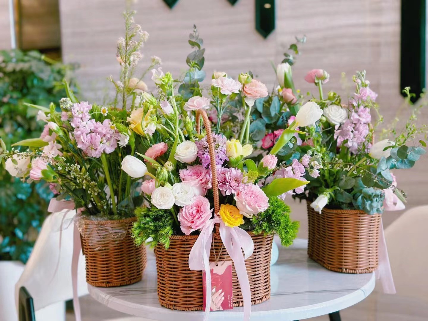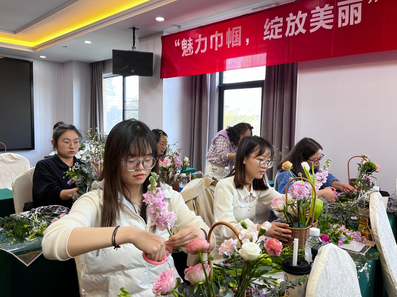紧接着组织了DIY插花活动,邀请专业花艺师现场讲解鲜花常识、色彩搭配、保鲜方法、花枝修剪和插花的基本技巧。在花艺师指导下,大家跃跃欲试,边学边交流,纷纷行动起来,开启鲜花“绽放”之旅,现场春意盎然、热闹非凡,一双双巧手将各色花卉配以枝叶点缀,让一把把散落的花材变成了美丽灵动又具有个性特色的花艺作品,大家喜笑颜开,拥抱着自己精心制作的花篮合影留念。