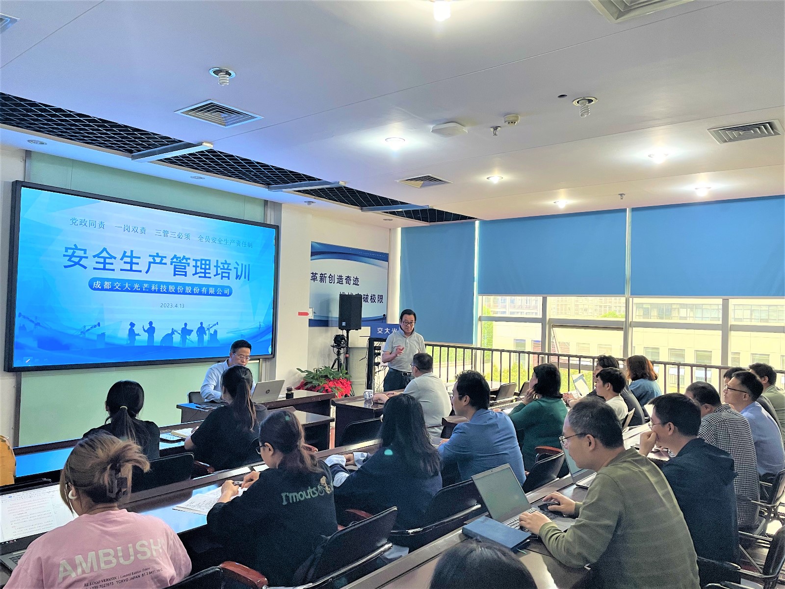 4月13日,交大光芒在软件园培训室开展安全生产管理培训。公司党总支委员、安环职委会成员及各部门主管级以上人员参加培训。