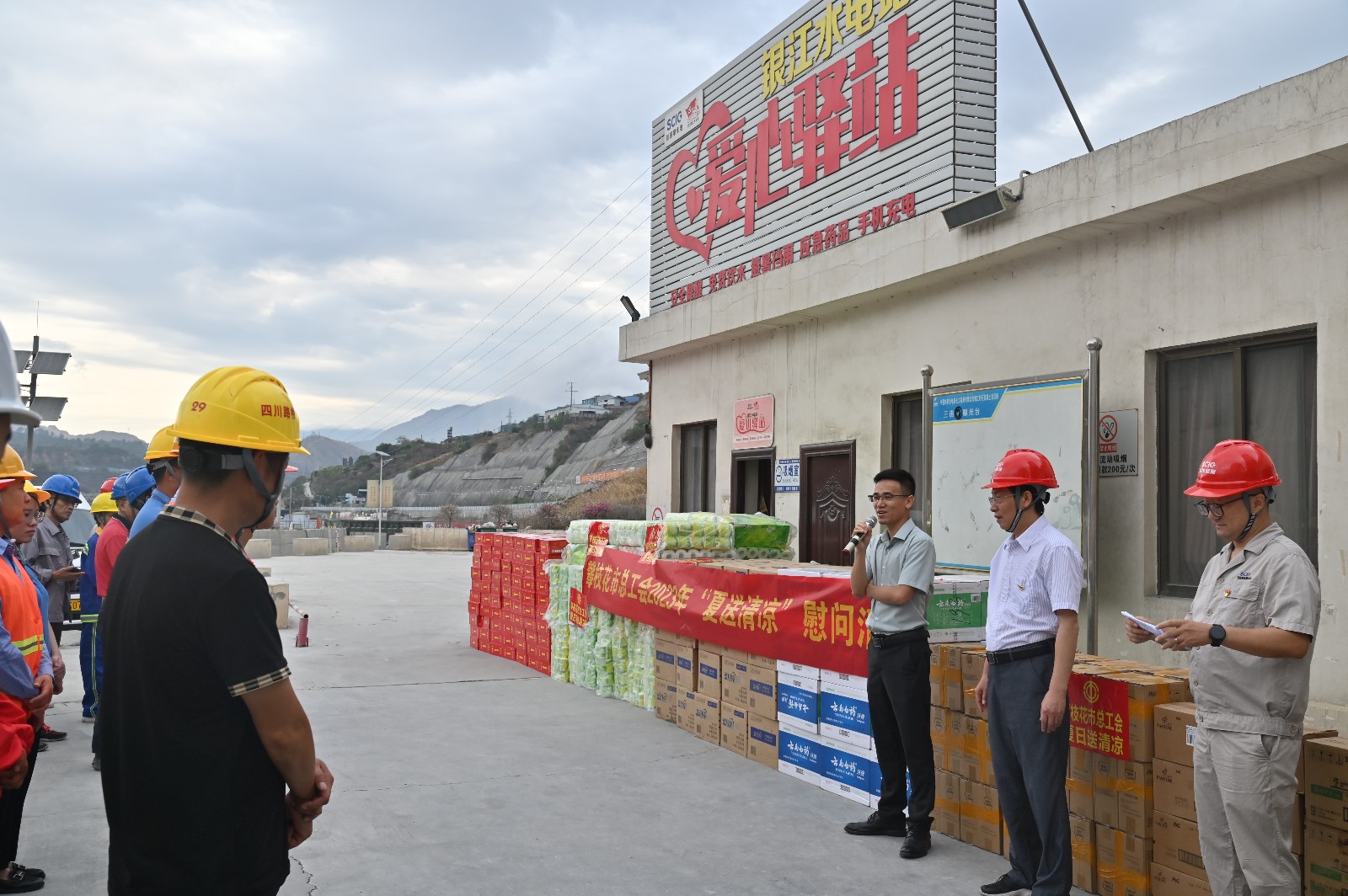 6月6日上午,攀枝花市总工会张平副主席一行来到银江水电站“爱心驿站”,慰问奋战在极端高温下的一线作业人员和管理人员。攀水电公司党总支书记、董事长徐孝刚,参建单位代表及公司志愿者服务队参加慰问,公司党总支副书记、董事会秘书、工会主席邓勇主持活动。