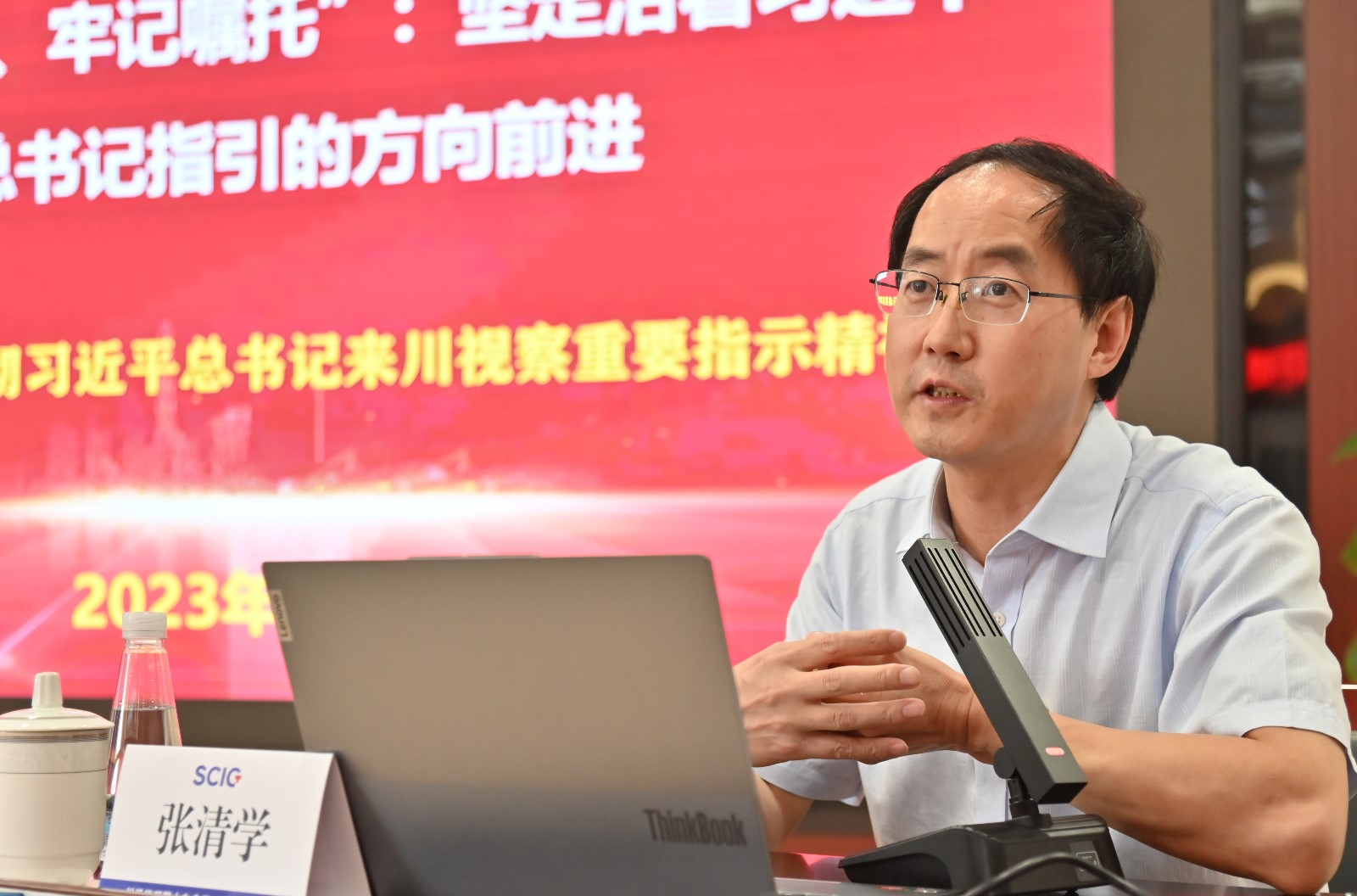张清学结合习近平总书记三次来川视察,从11个方面深入浅出详细讲授了习近平总书记来川视察的重要指示精神,结合时政热点,善用党史故事,围绕聚焦重点再发力,紧盯生态环境保护、科技创新和高校毕业生就业、安全生产、地质灾害防治等重点工作进行讲述。