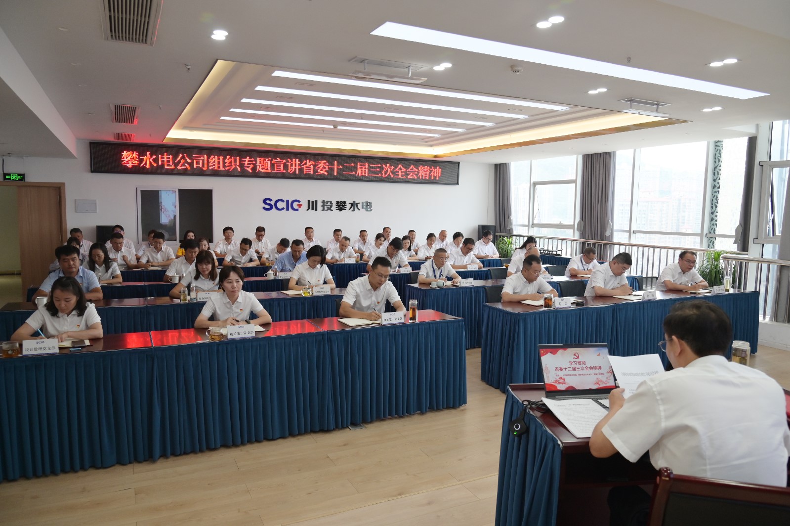为进一步引导广大职工深入学习贯彻省委十二届三次全会重大决策部署,激发大家干事创业、坚定推动高质量发展的精气神,8月19日下午,吃瓜副总经理、攀水电公司党总支书记、董事长徐孝刚进行省委十二届三次全会精神专题宣讲。公司全体党员、职工,各参建单位党员职工代表共计45人参加此次宣讲会。