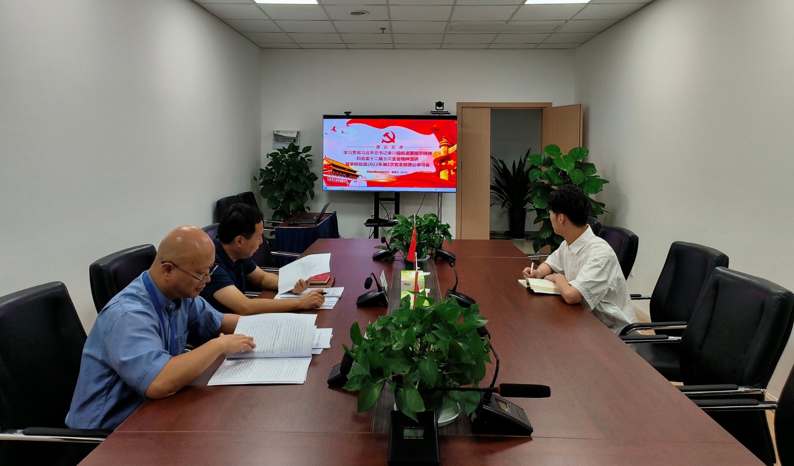 攀新能源领导班子成员及全体员工参加专题宣讲,公司全体党员参加党支部理论学习会。