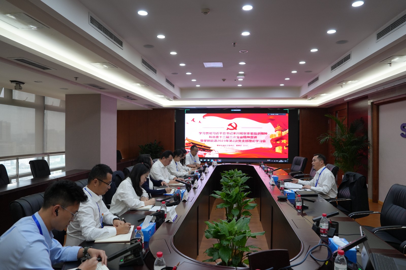 随后,王行仁主持召开了攀新能源党支部2023年第2次理论学习会。会上,公司领导班子就政治理论、上级精神、安全环保等学习内容逐一发言,交流讨论学习体会。王行仁强调,公司未来发展任重道远,要从理论学习中深化认识,在业务实践中提高能力,各部门要通力协作,合力攻坚,在切实保障安全工作的前提下,为公司开疆拓土、乘风破浪。