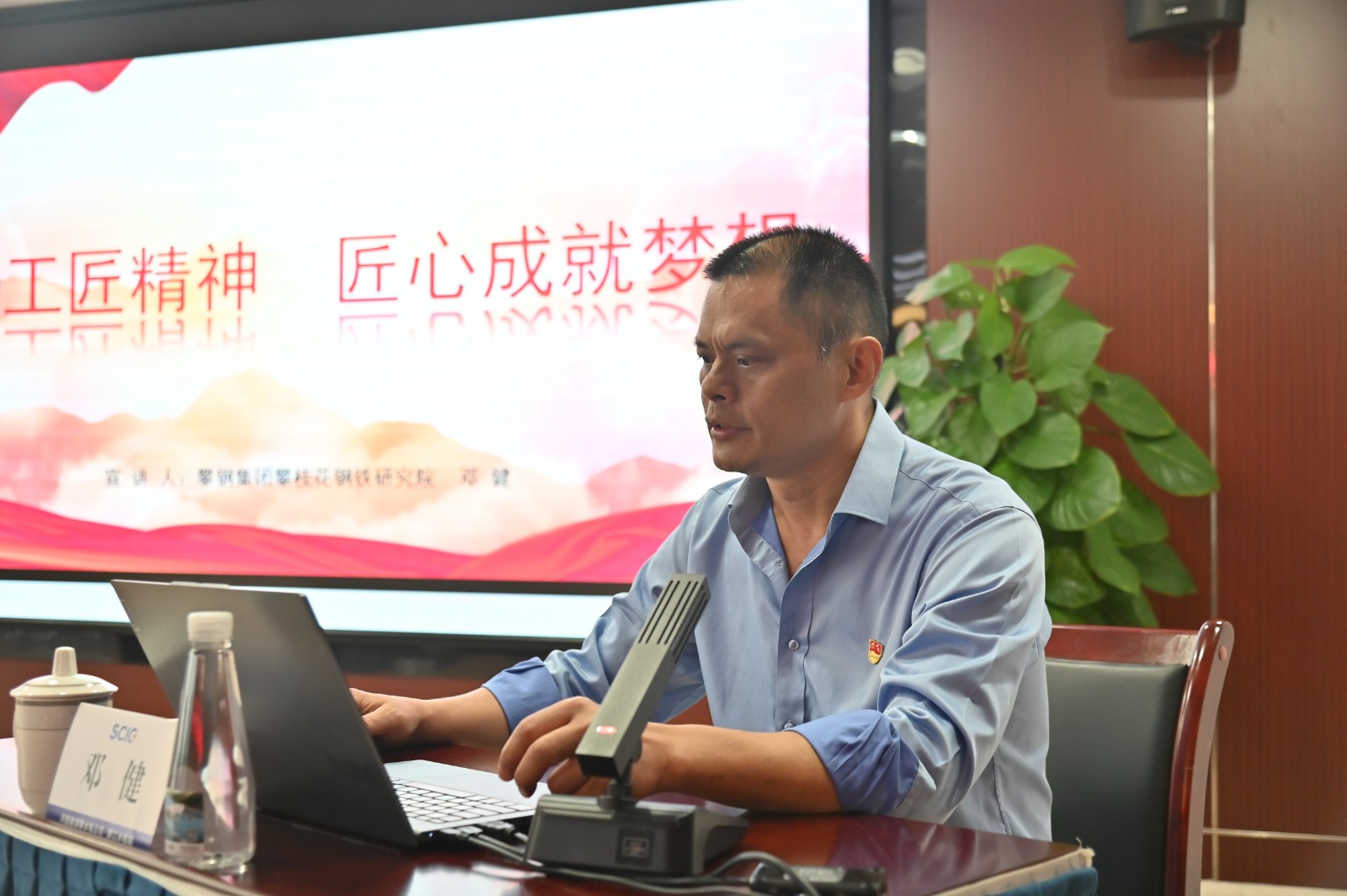 本次宣讲会邀请到了“东区工匠”“电焊技术大比武第一名”、“三高人才”“攀钢技能拔尖人才”荣誉称号获得者,攀研院电焊高级技师邓健为广大职工进行宣讲。邓健主要从事科研及钢轨等材料焊接操作试验和重轨焊接实验室日常管理工作,宣讲大会上,他结合党的二十大精神和省委十二届三次全会精神,用质朴的语言、真挚的情感生动讲述了自己立足岗位、艰苦奋斗的工作历程和典型事迹,并号召广大职工学习和领悟劳模精神、劳动精神、工匠精神的深刻内涵,教育引导大家立足岗位、苦练本领、创先争优,努力成为行业骨干、青年先锋。