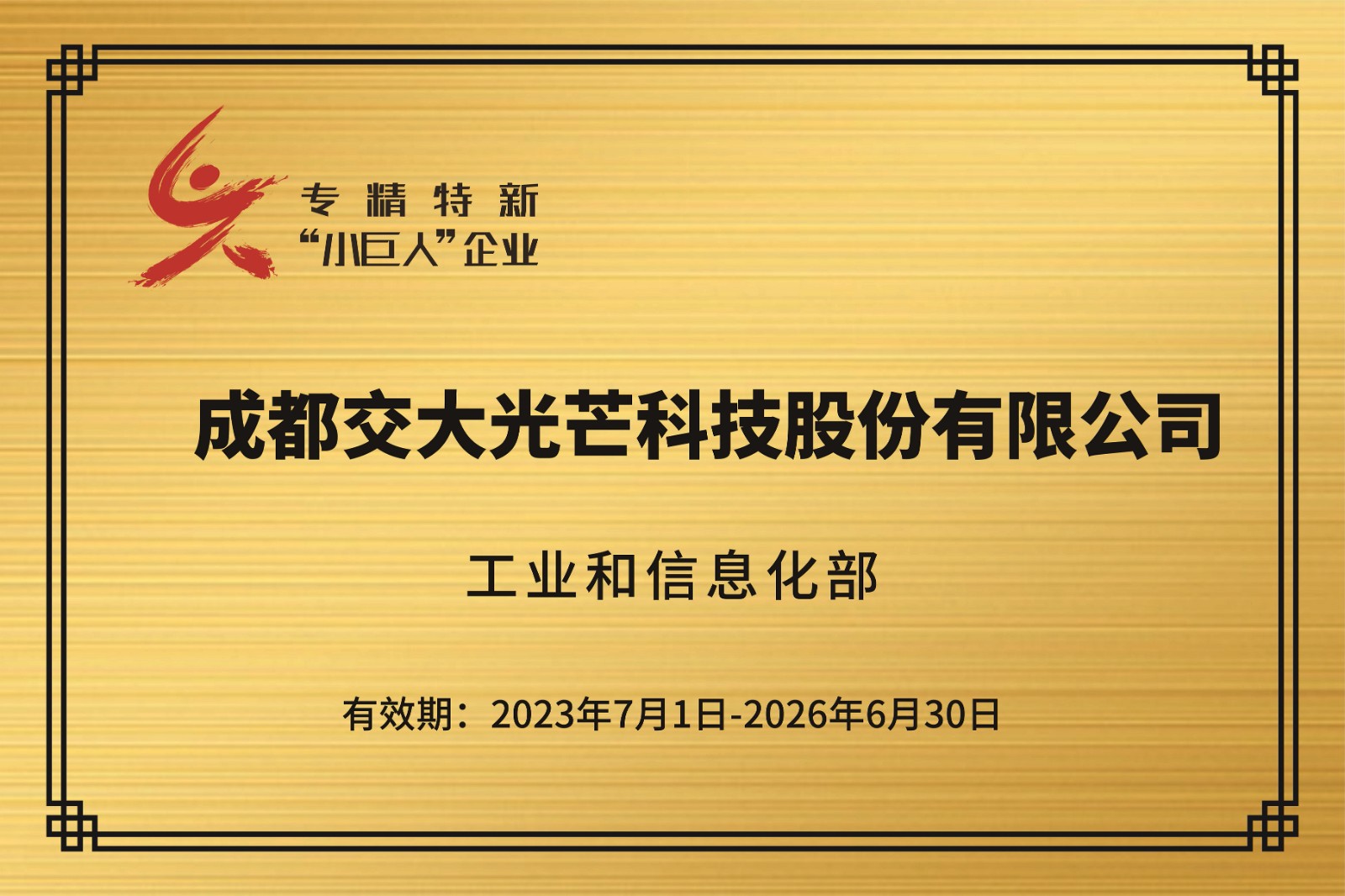 日前,国家工业和信息化部公布《关于第五批专精特新“小巨人”企业和通过复核的第二批专精特新“小巨人”企业名单的通告》,成都交大光芒科技股份有限公司被授予专精特新“小巨人”称号。