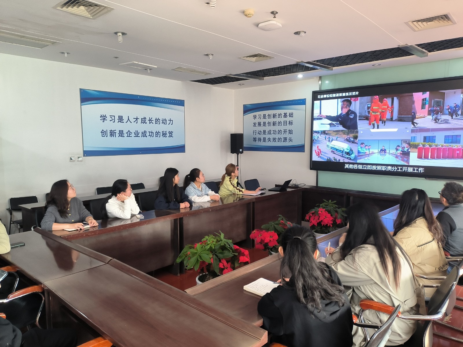 在演练准备阶段,公司组织应急疏散行动组成员、应急救援行动组及安全环保部人员集中学习。通过消防疏散演练方案、消防安全应急处理基础知识、应急机构职责和观看警示教育、交流心得体会等方式开展消防安全培训,并对本次消防演练进行部署,进一步提升自救、营救、疏散能力,以便在发生紧急情况时能快速反应,高效开展救援行动。