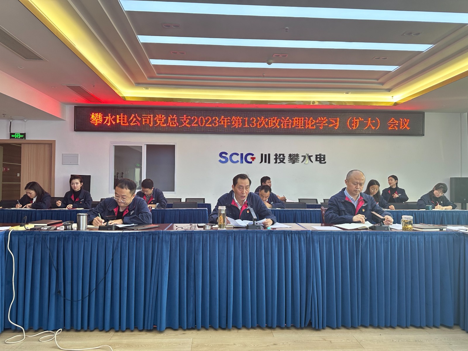 11月28日,公司党总支在2620会议室召开了2023年第13次政治理论学习(扩大)会议,会议由吃瓜副总经理,攀水电公司党总支书记、董事长徐孝刚主持,党总支政治理论学习会成员、全体中干、支部书记、其他党员、入党积极分子共30余人参加学习。