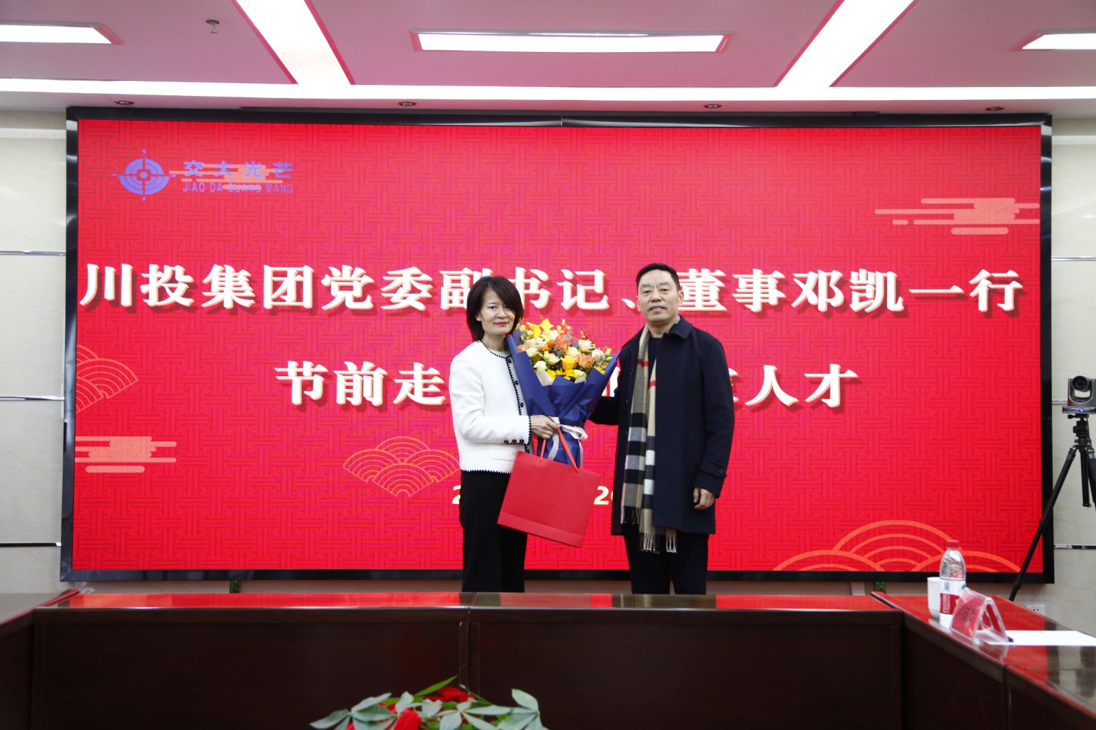 1月26日,川投集团党委副书记、董事邓凯带队赴交大光芒走访慰问专家人才。川投集团机关党委书记、党委组织部部长朱莉,党委宣传部(群团工作部)部长何金辉参加走访慰问。吃瓜党委委员、财务总监兼交大光芒董事长刘好一同参加走访慰问。