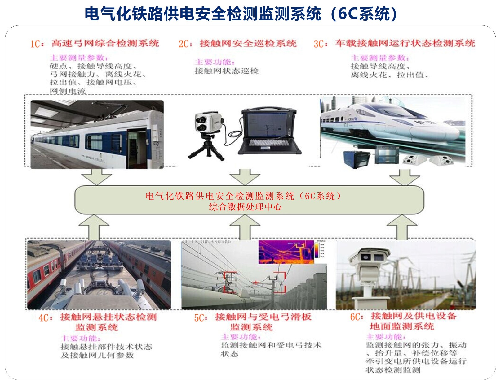 据统计,近年来铁路接触网供电设备故障主要原因是,供电设备状态异常、外部环境干扰,且外部环境原因占比呈逐年上升趋势。在铁路安全方面,6C检测对铁路接触网供电设备的安全起着不可或缺的作用,它可以对接触网供电设备进行全方位、全覆盖的综合检测,精准高效地找出设备的隐患。