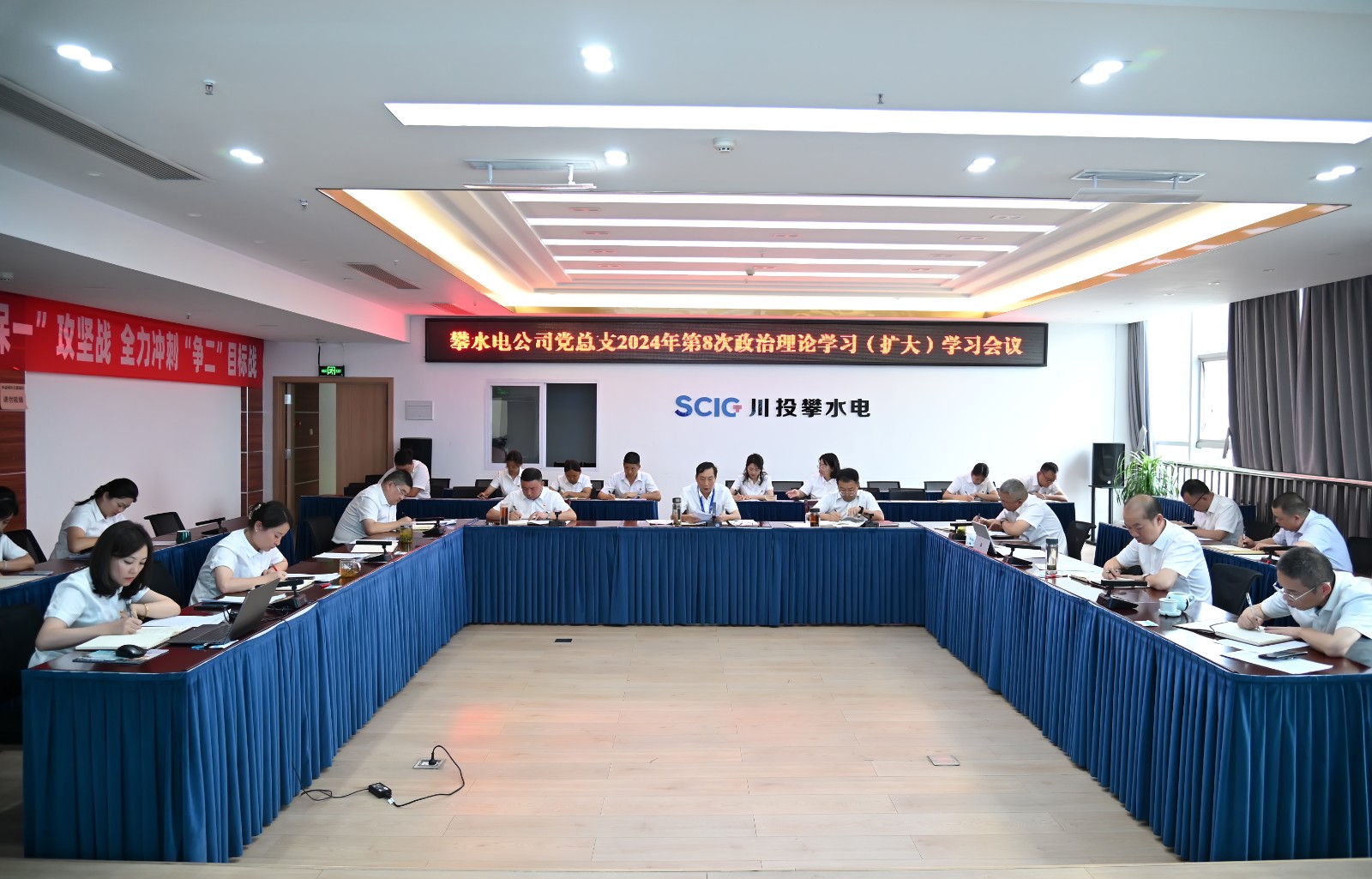 6月25日下午,攀水电党总支在2620会议室召开了2024年第8次政治理论学习(扩大)会议,吃瓜副总经理、攀水电公司党总支书记、董事长徐孝刚主持会议,党总支政治理论学习会成员、全体中干、支部书记、其他党员、统战对象、入党积极分子共30余人参加学习。