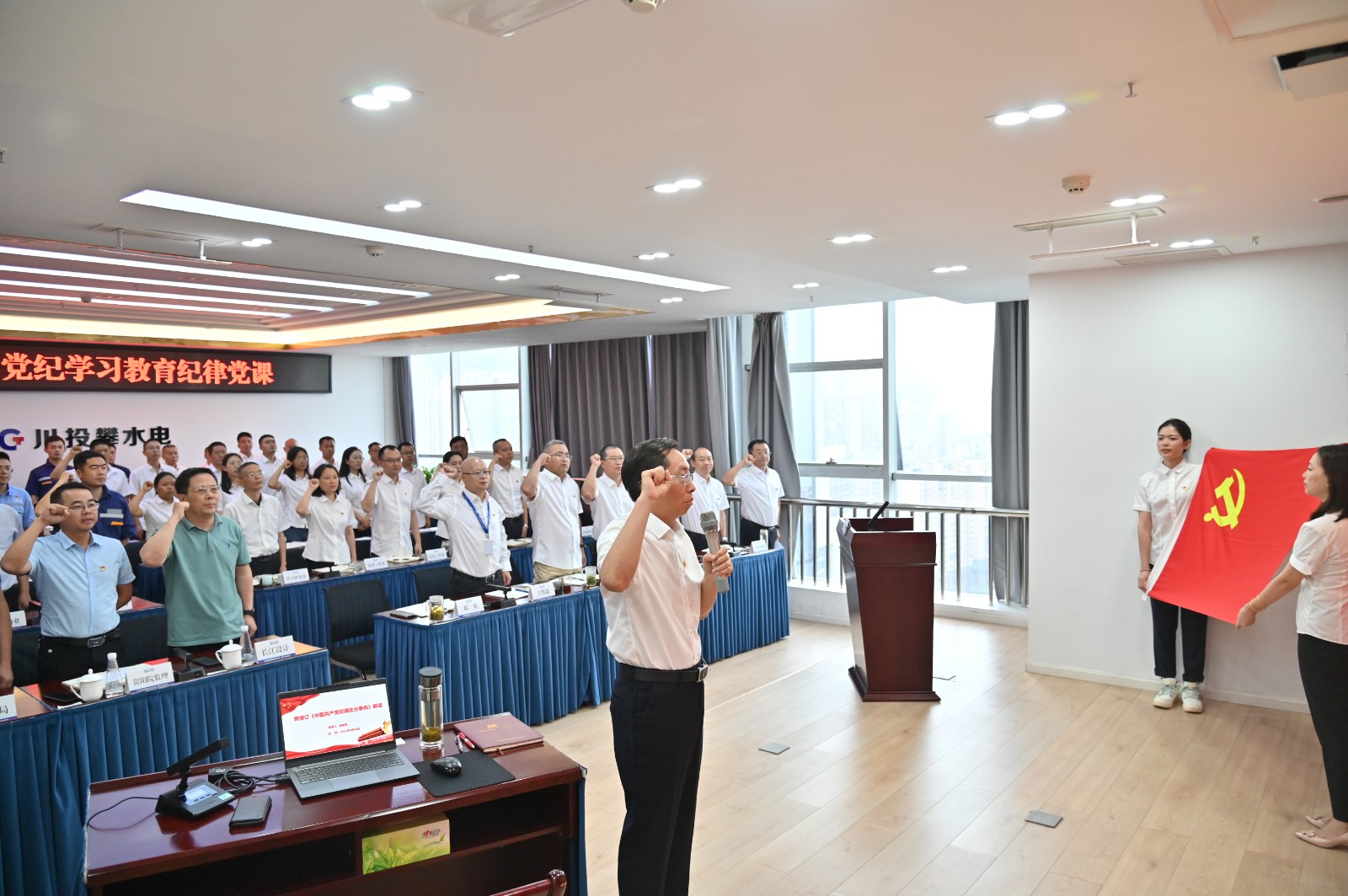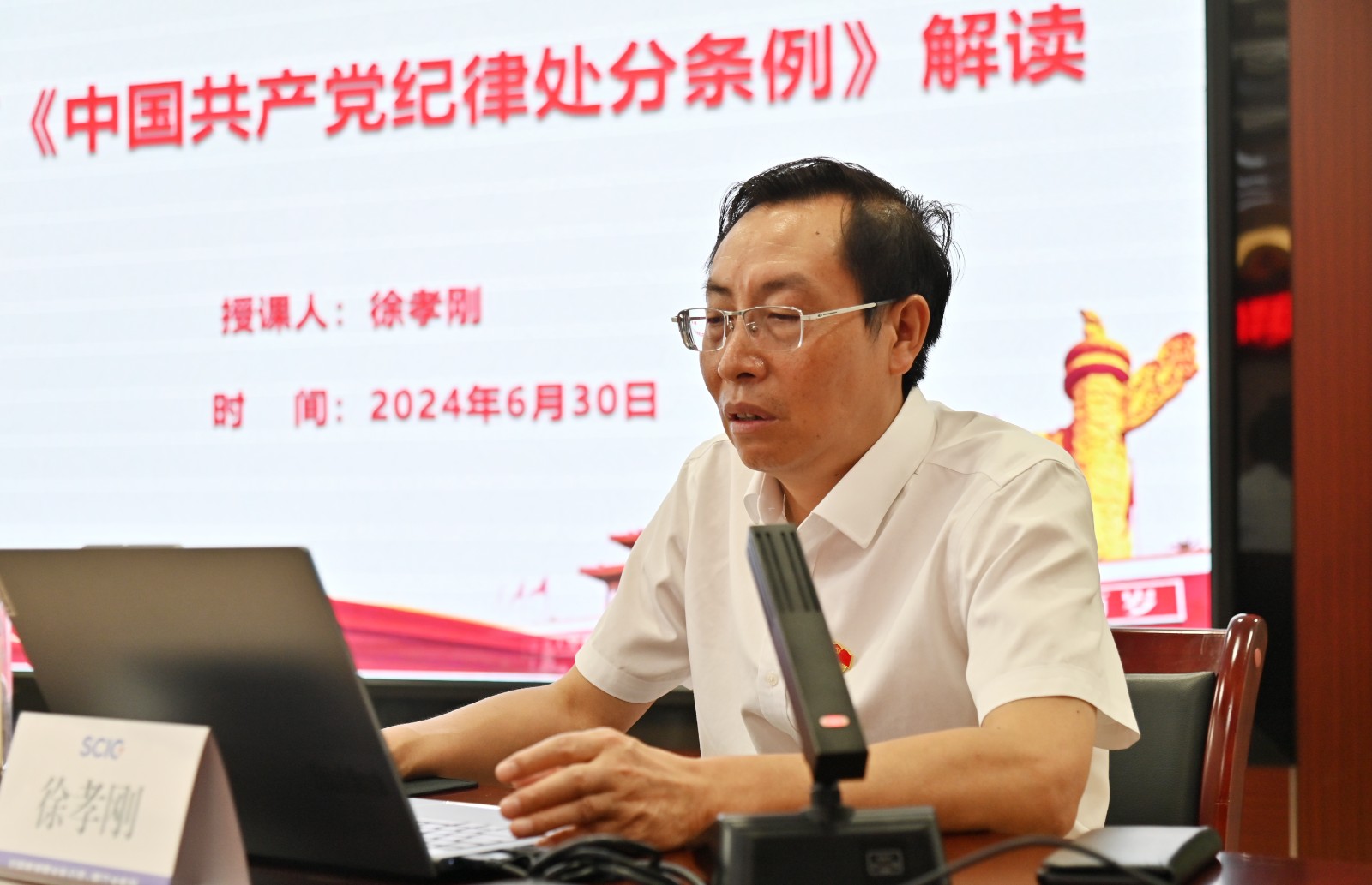 在全党开展党纪学习教育和党的103岁生日来临之际,按照吃瓜党委和攀水电党总支的安排部署,6月30日上午,吃瓜副总经理、攀水电公司党总支书记、董事长徐孝刚讲授了党纪学习教育纪律党课并宣讲省委十二届五次全会精神,公司全体员工、参建单位负责人及党员代表共计50余人参加。