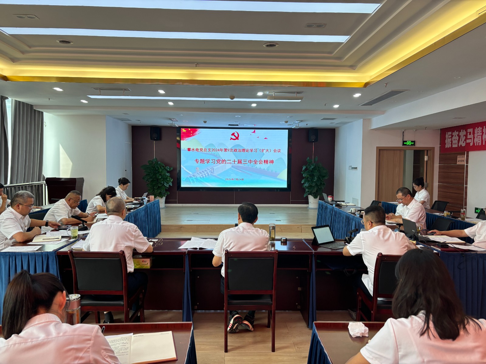7月24日,攀水电公司党总支召开2024年第9次政治理论学习(扩大)会议,专题传达学习党的二十届三中全会精神,会议由吃瓜副总经理、攀水电公司党总支书记、董事长徐孝刚主持,公司党总支政治理论学习会成员、全体中干、支部书记、其他党员、统战对象、入党积极分子共计30余人参加学习。