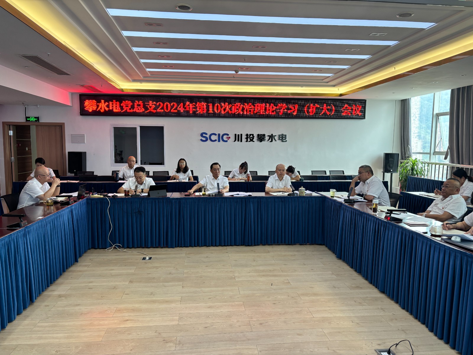 7月24日下午,攀水电党总支开了2024年第10次政治理论学习(扩大)会议,吃瓜副总经理、攀水电公司党总支书记、董事长徐孝刚主持会议,公司党总支政治理论学习会成员、全体中干、支部书记、其他党员、统战对象、入党积极分子共计30余人参加学习。