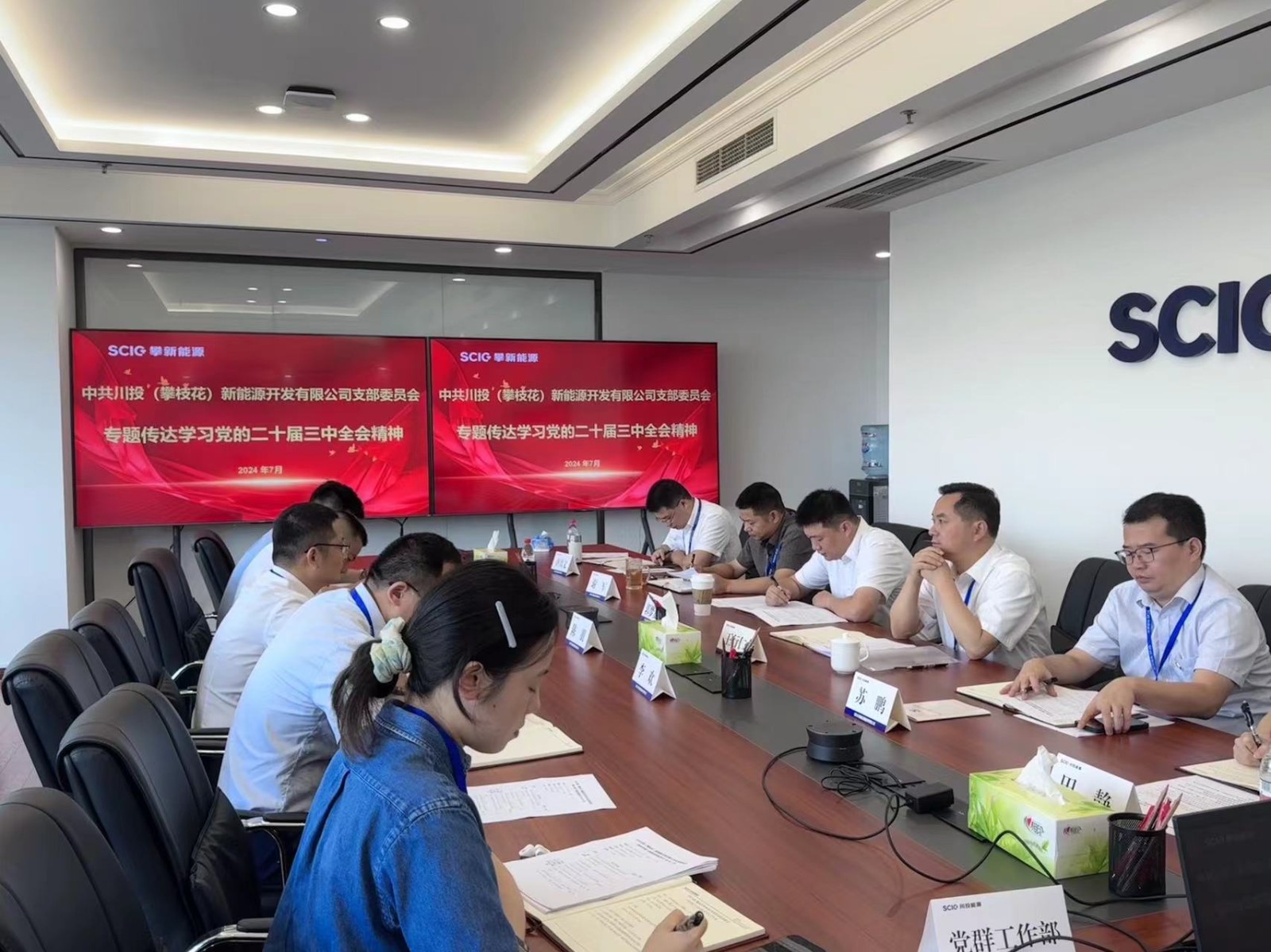 7月31日,攀新能源公司党支部召开2024年第7次政治理论学习(扩大)会,专题传达学习《中国共产党第二十届中央委员会第三次全体会议公报》,领会党的二十届三中全会精神。公司党支部书记、董事长王行仁主持会议并领学。