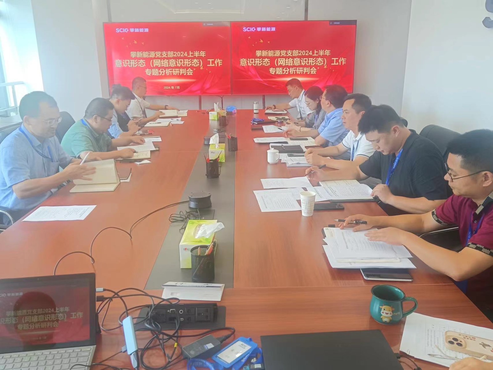会上传达学习了习近平总书记关于意识形态工作的重要论述,深入贯彻落实习近平总书记关于意识形态工作重要指示精神。认真梳理意识形态领域相关情况,深入分析研判攀新能源公司2024年上半年意识形态领域工作开展情况,安排部署了下一阶段意识形态工作。