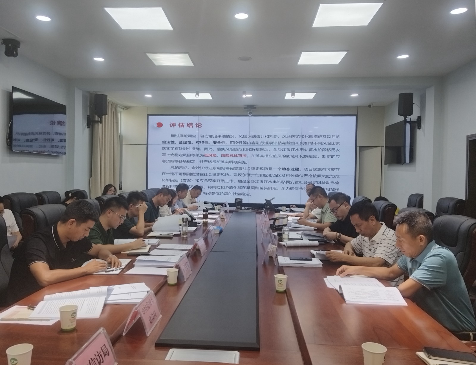 会议首先由设计单位对银江水电站工程蓄水阶段移民安置社会稳定风险评估报告成果进行汇报,与会人员进行了充分讨论,在社会稳定风险识别、风险防范和化解措施等方面提出了修改意见及建议。会议认为,该报告内容符合实际情况,达到《四川省社会稳定风险评估办法》要求,金沙江银江水电站工程蓄水阶段移民安置社会稳定风险等级为低风险,风险总体可控。会议要求相关部门要持续抓好风险防范工作及化解措施的执行,确保不发生水利水电工程移民群体事件,为下一步银江水电站工程蓄水移民安置验收打牢基础。