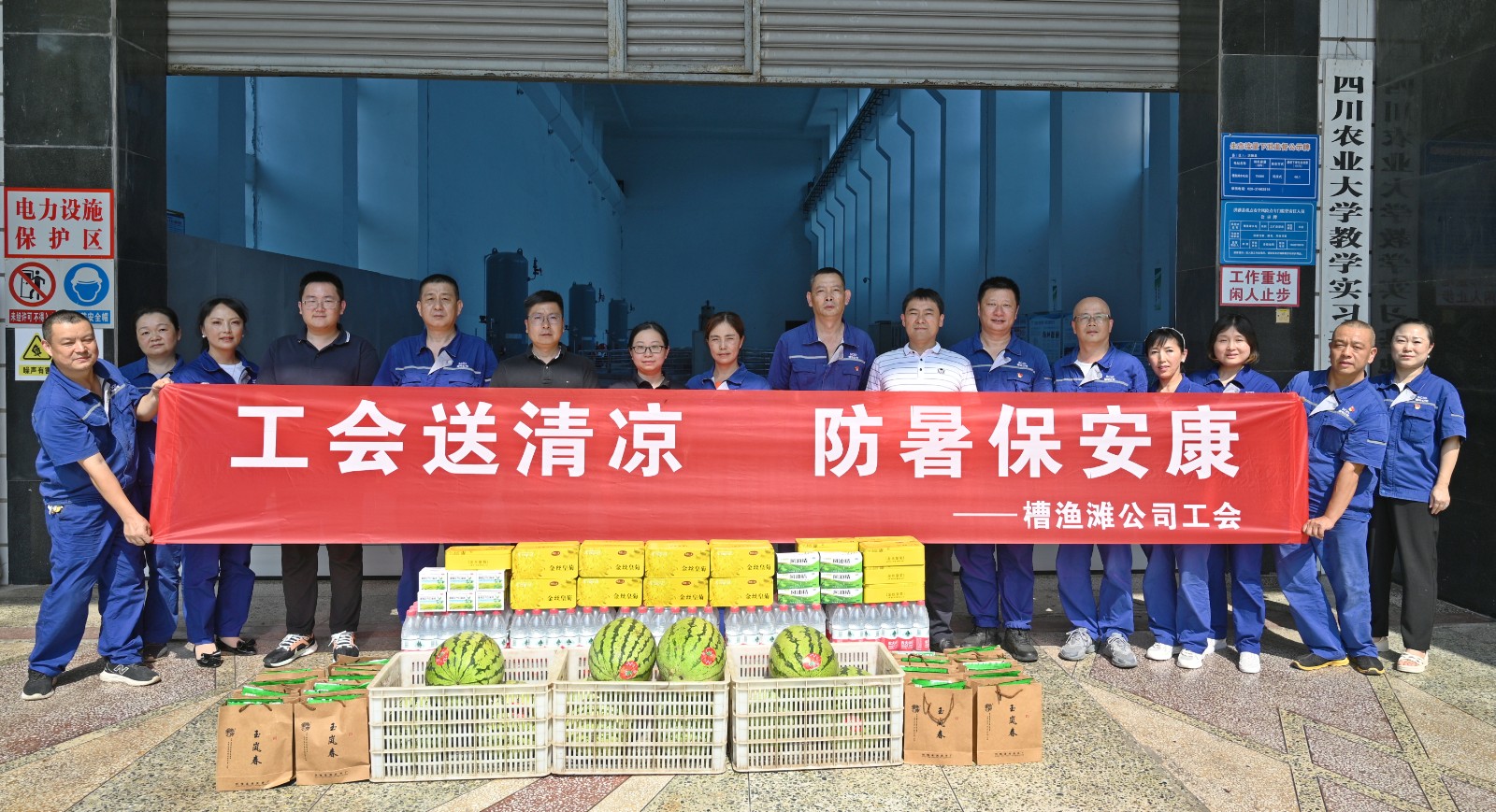 8月14日下午,川投电力党委副书记、工会主席杨鑫带队到槽渔滩公司调研指导党建品牌创建工作,并开展“送清凉”慰问活动。
